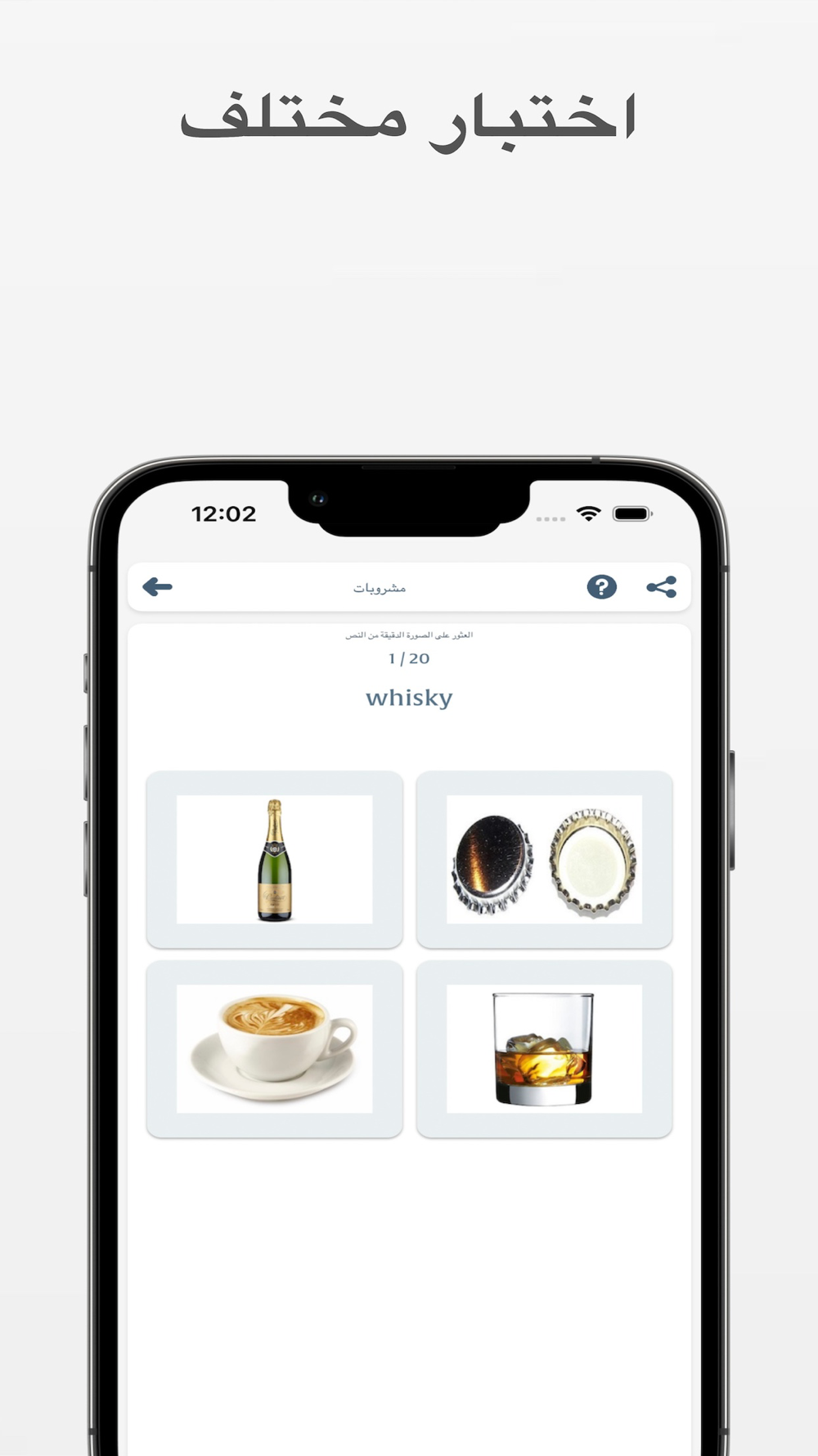 اختبر معلوماتك من أنواع مختلفة من الاختبارات التي يوفرها التطبيق ، مثل: ربط الكلمات التي لها نفس المعنى ، وإيجاد الإجابة الصحيحة في الصورة ، وترجمة الكلمة أو الجملة ، والاستماع إلى الجملة ثم كتابتها ، والنطق بها. . . اكتب الجملة التي تظهر وأكثر.
