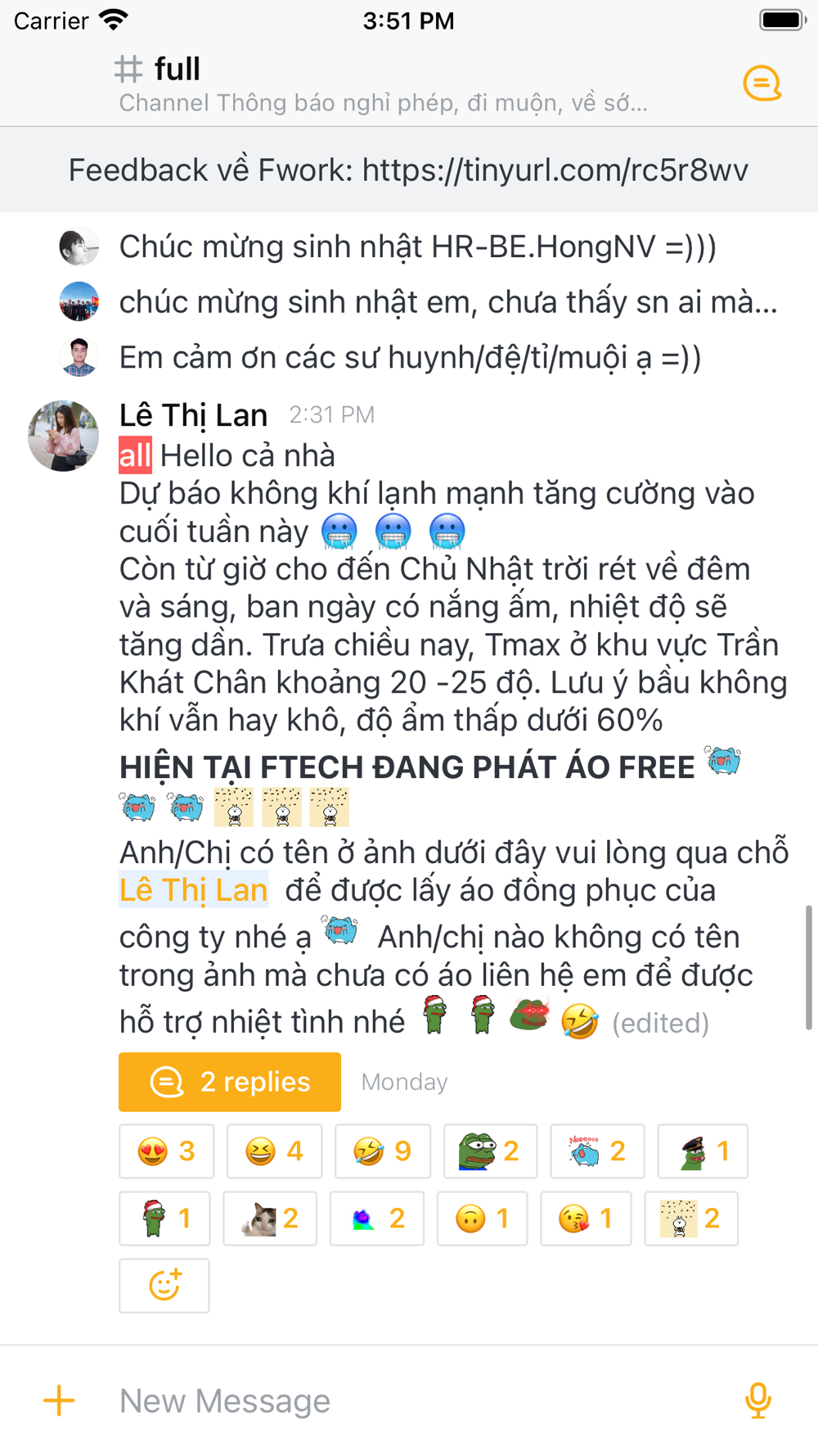 FWork là ứng dụng trao đổi nhóm để bạn có thể hoàn thành nhiều công việc hơn, cho dù bạn thuộc về một doanh nghiệp lớn hay một doanh nghiệp nhỏ. Kiểm tra danh sách việc cần làm của bạn và đưa đúng người vào đúng dự án, từ đó bạn có thể trò chuyện và trao đổi thông tin cùng nhau. FWork có sẵn trên App Store vì vậy bạn có thể trao đổi công việc mọi lúc, mọi nơi.