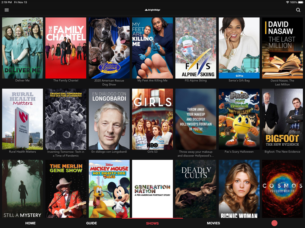 BrightRidge Video is a streaming TV service available exclusively to BrightRidge High-speed Data customers. Watch TV how you want, anytime you want using your favorite mobile device or TV without the need for a set top box! Amazing features include:
