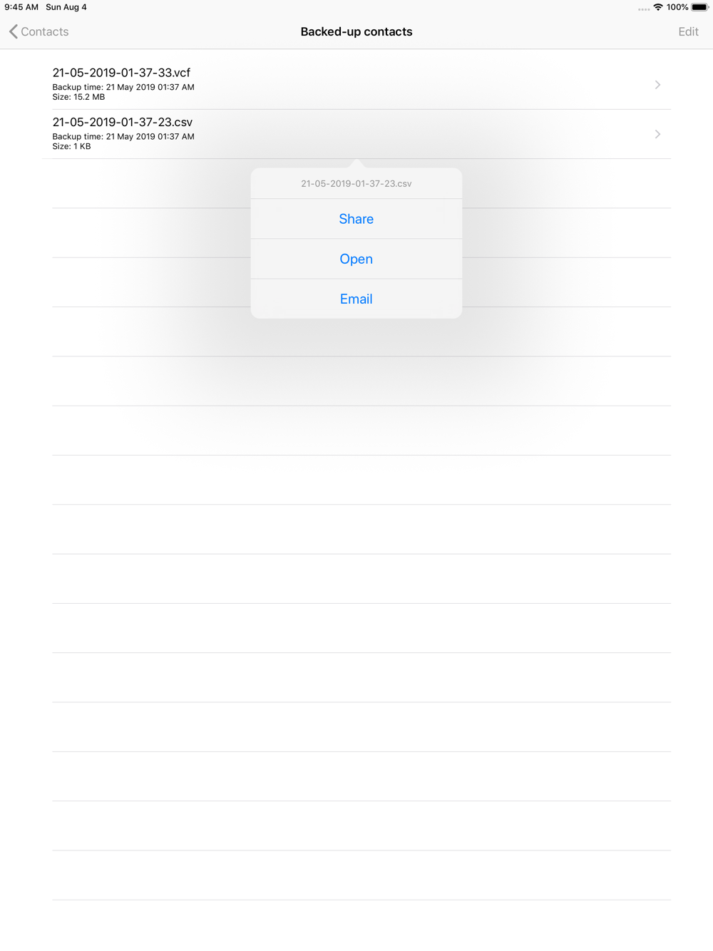 Backup contacts to "vcf" and "csv" is the easy and fast way to backup and restore your contacts without using a computer or synchronization. You can also transfer your backed-up contacts from one device to another one.