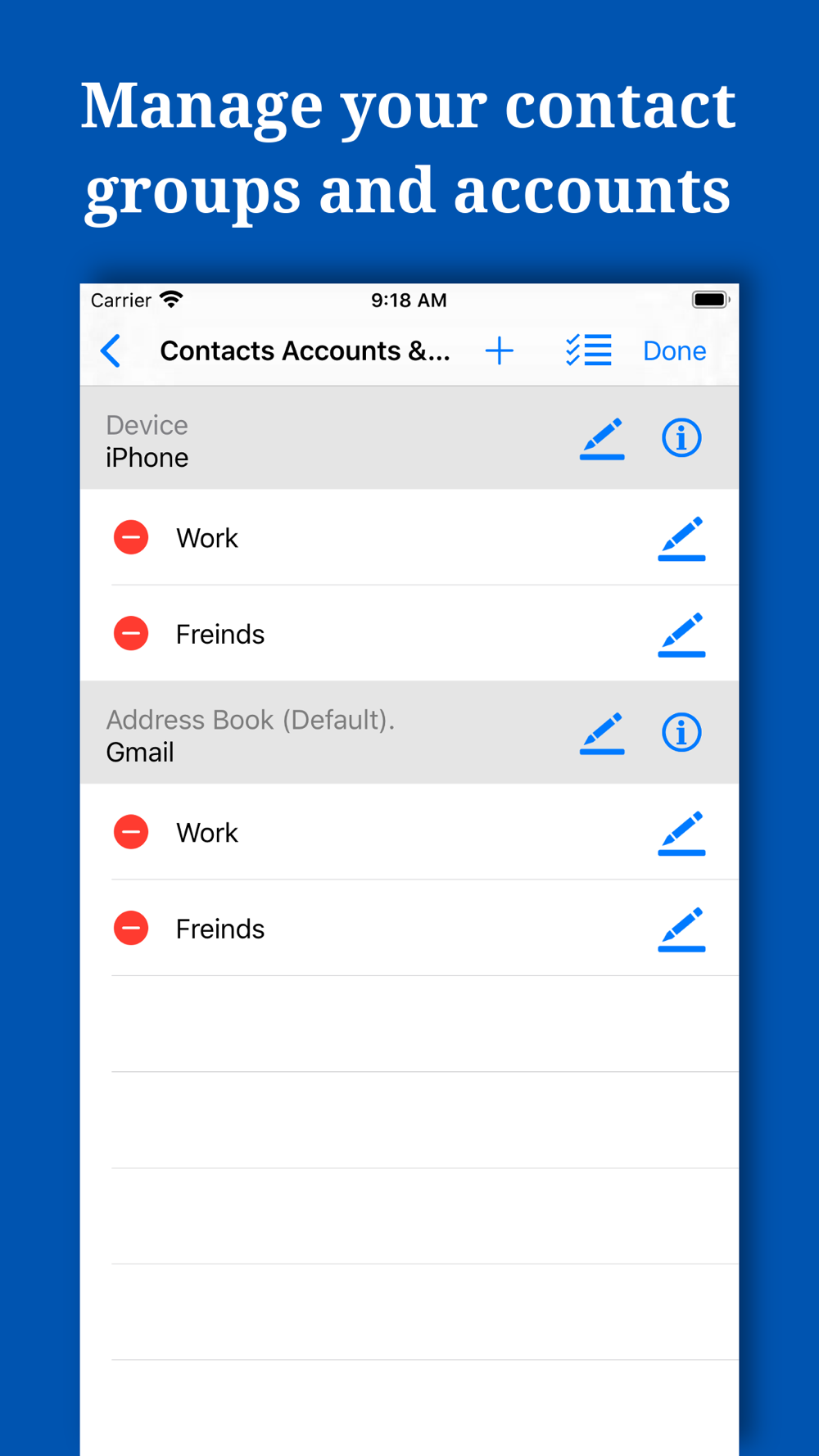 - You can delete contacts groups and create new contacts groups (if the contacts container support creating groups)
