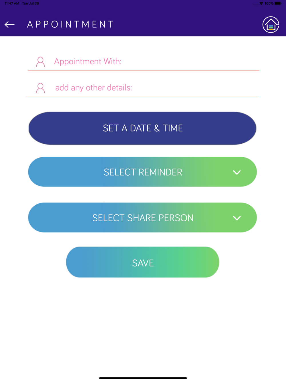 Now manage all appointments for your family members like doctors, office meetings, clients etc. all at one place. Also you can set reminder for appointment to other family members.