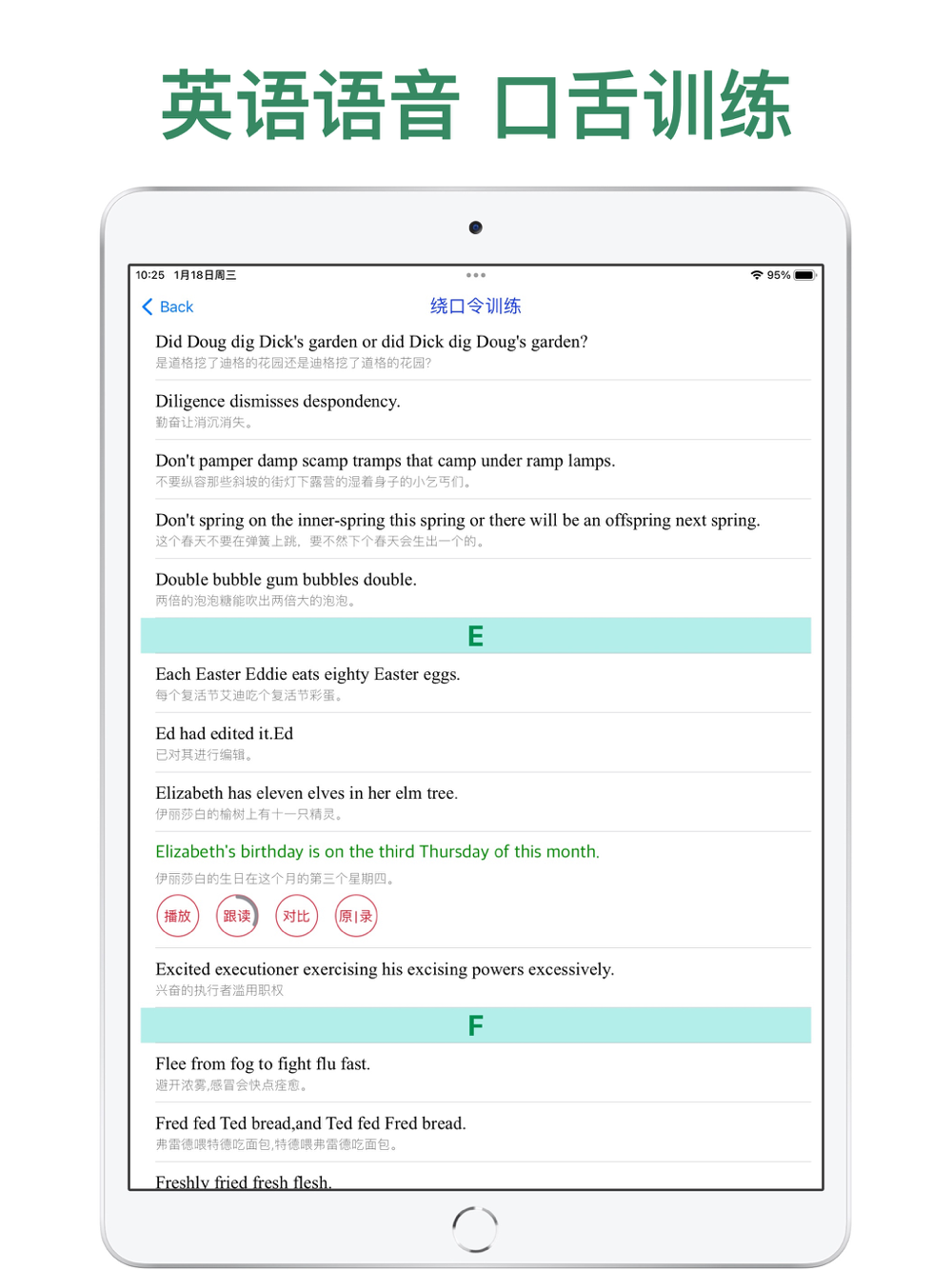 通过英文绕口令的跟读模仿,比对,训练英文口腔肌肉