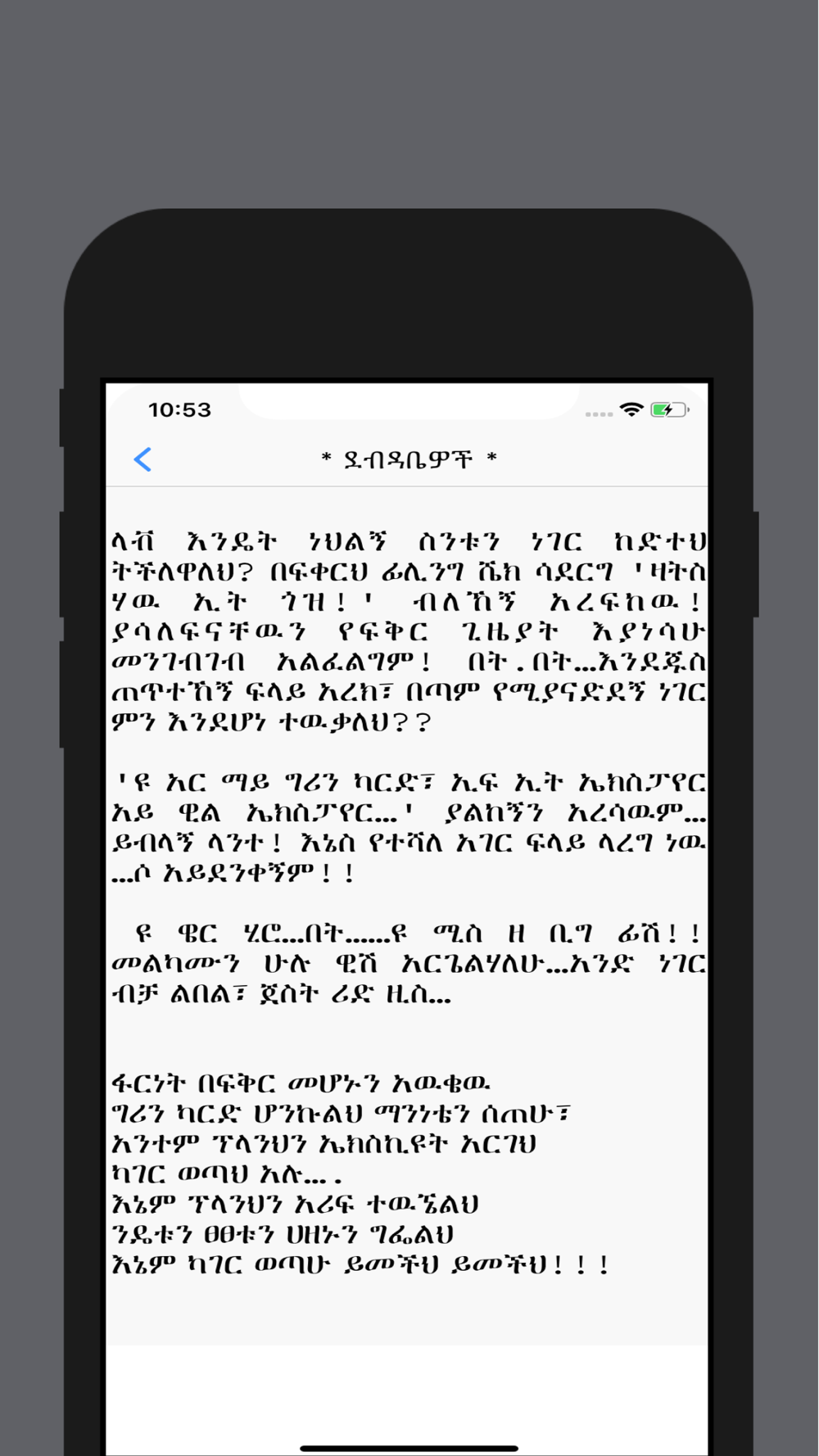 Yefeker Debdabe is Amharic iOS app containing dozens of Amharic romantic literature, poems, funny letters and love messages.All of the letters are prepared in Ethiopian context and are of original content collected from various social media as well as hard copy books.