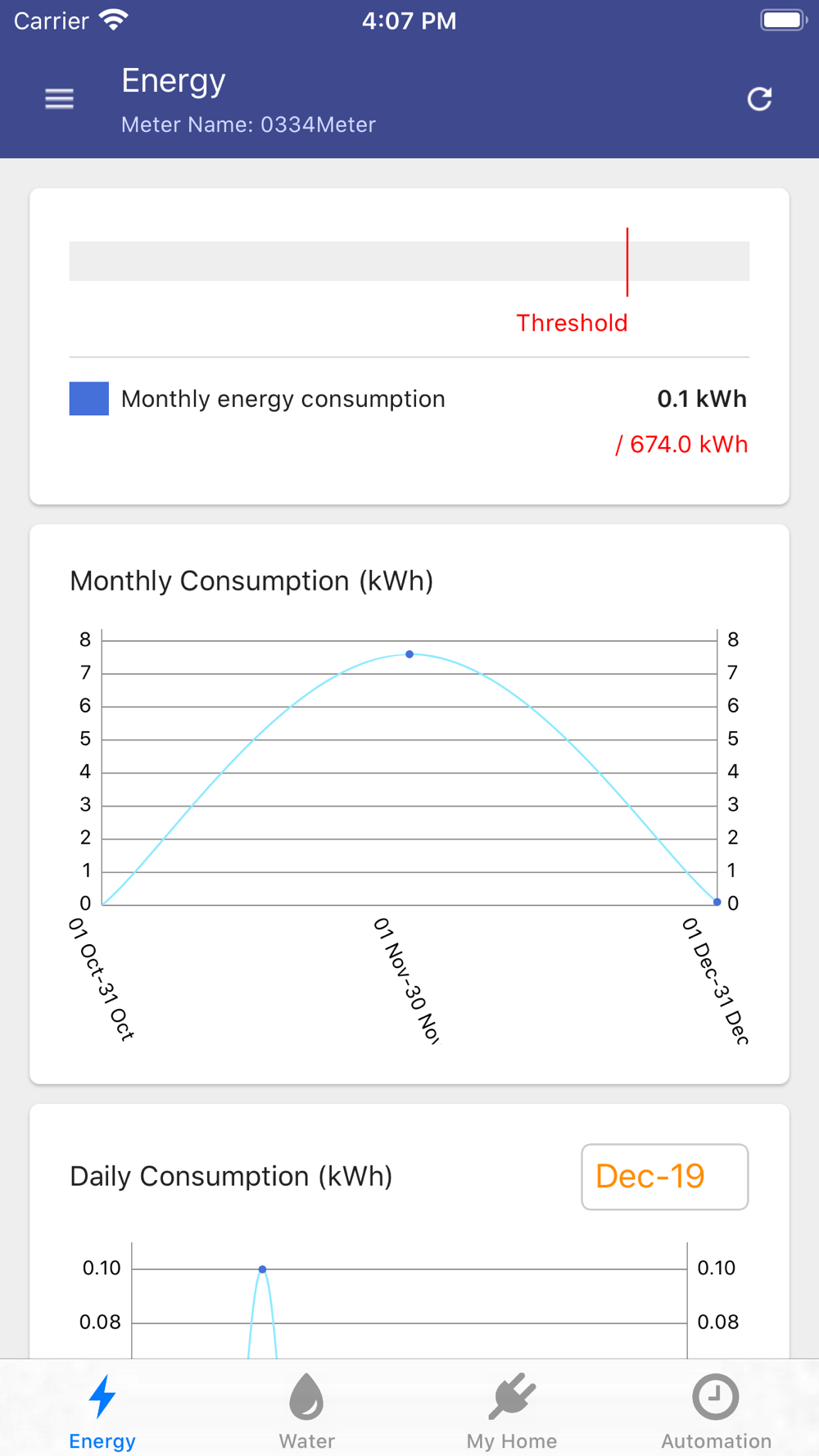 You can also view your daily and monthly energy and water consumption, and set a threshold to manage your consumption for the month.