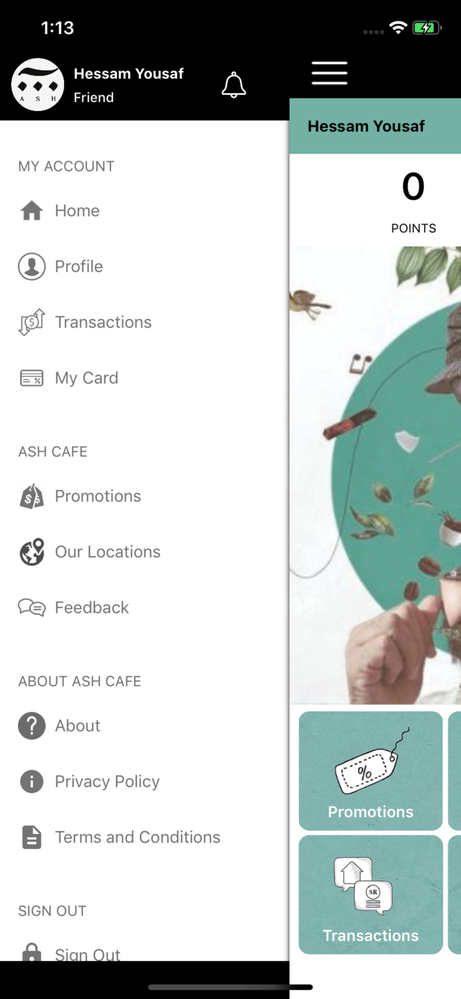 The Ash Cafe Loyalty Program will allow their members to use their own account to perform the following tasks via their mobile phone .