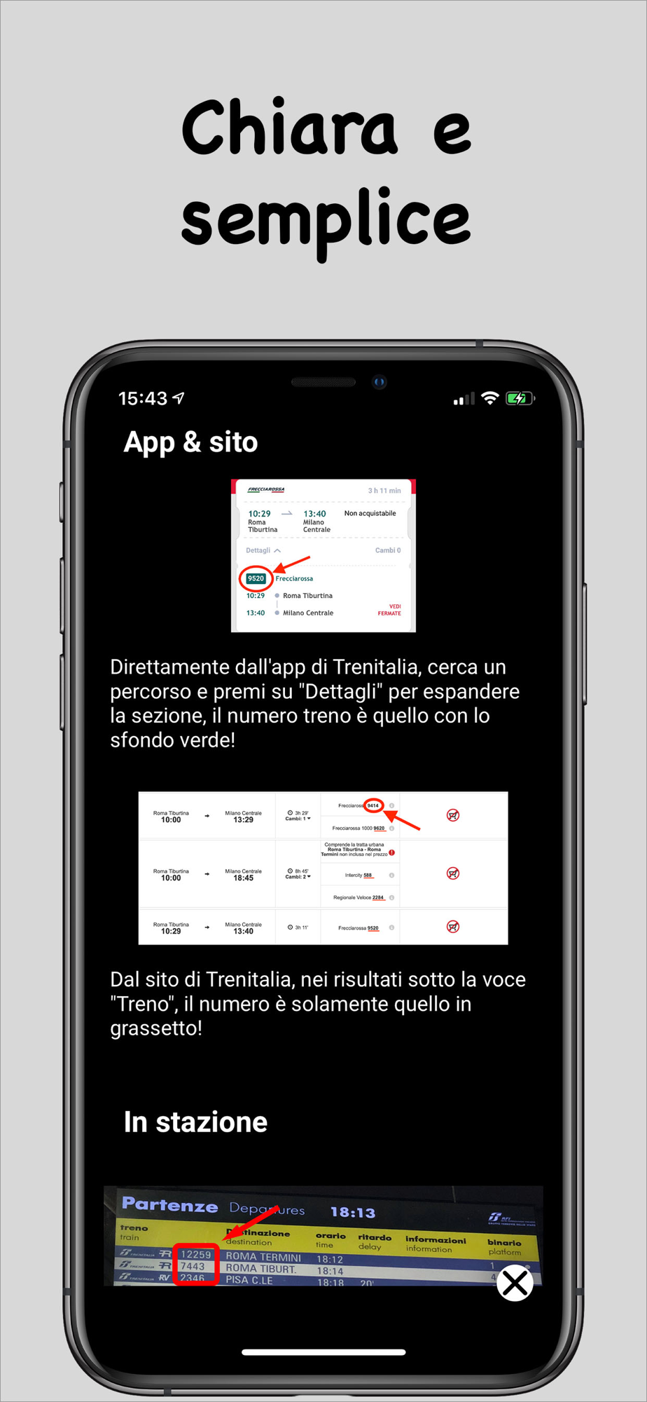 - Hai la possibilità di vedere modifiche e deviazioni del tuo treno in tempo reale