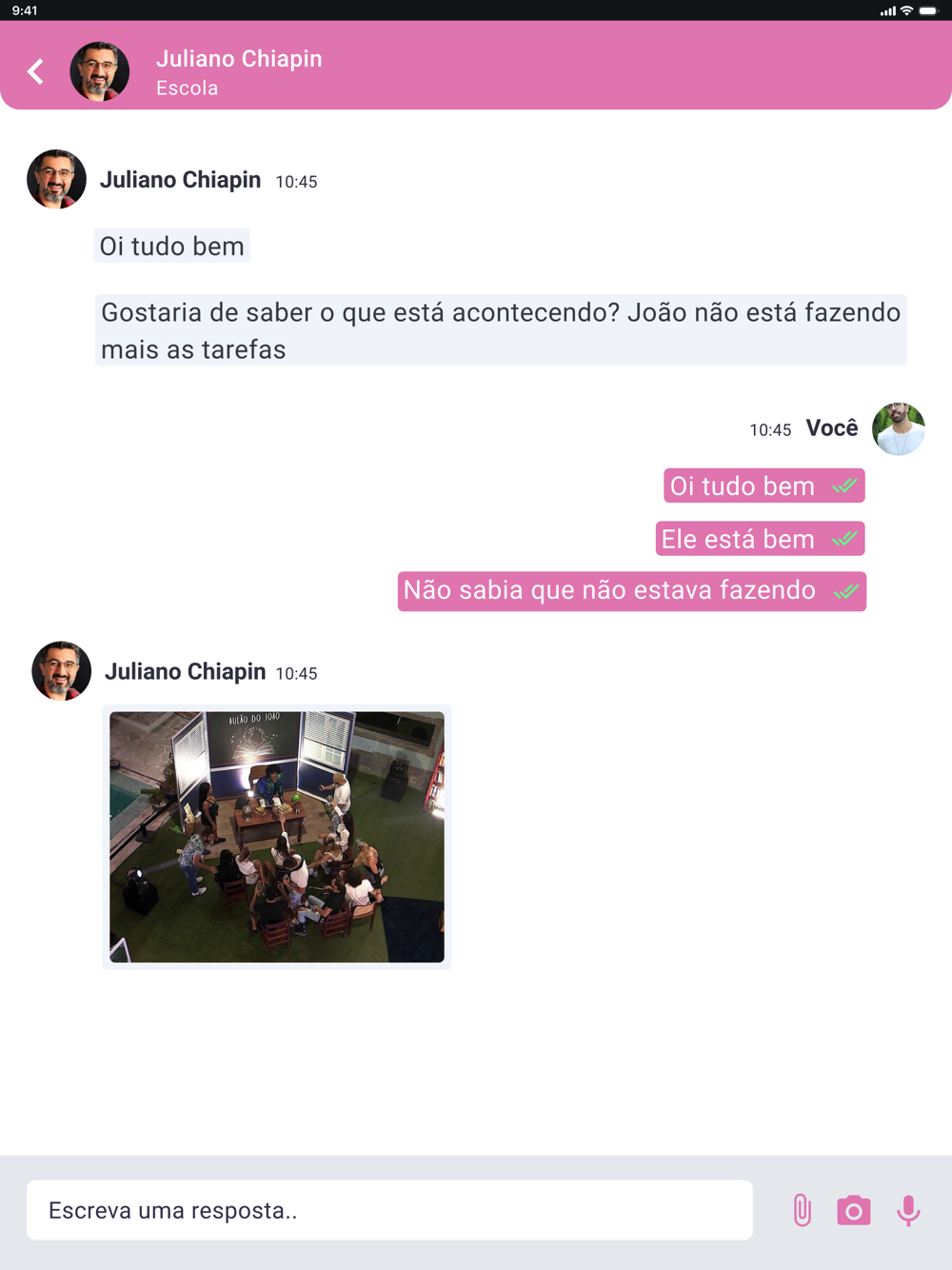 Todos os comunicados, confirmações, enquetes, avisos e demais mensagens da escola são recebidas em tempo real e você é avisado através de uma notificação no seu smartphone.