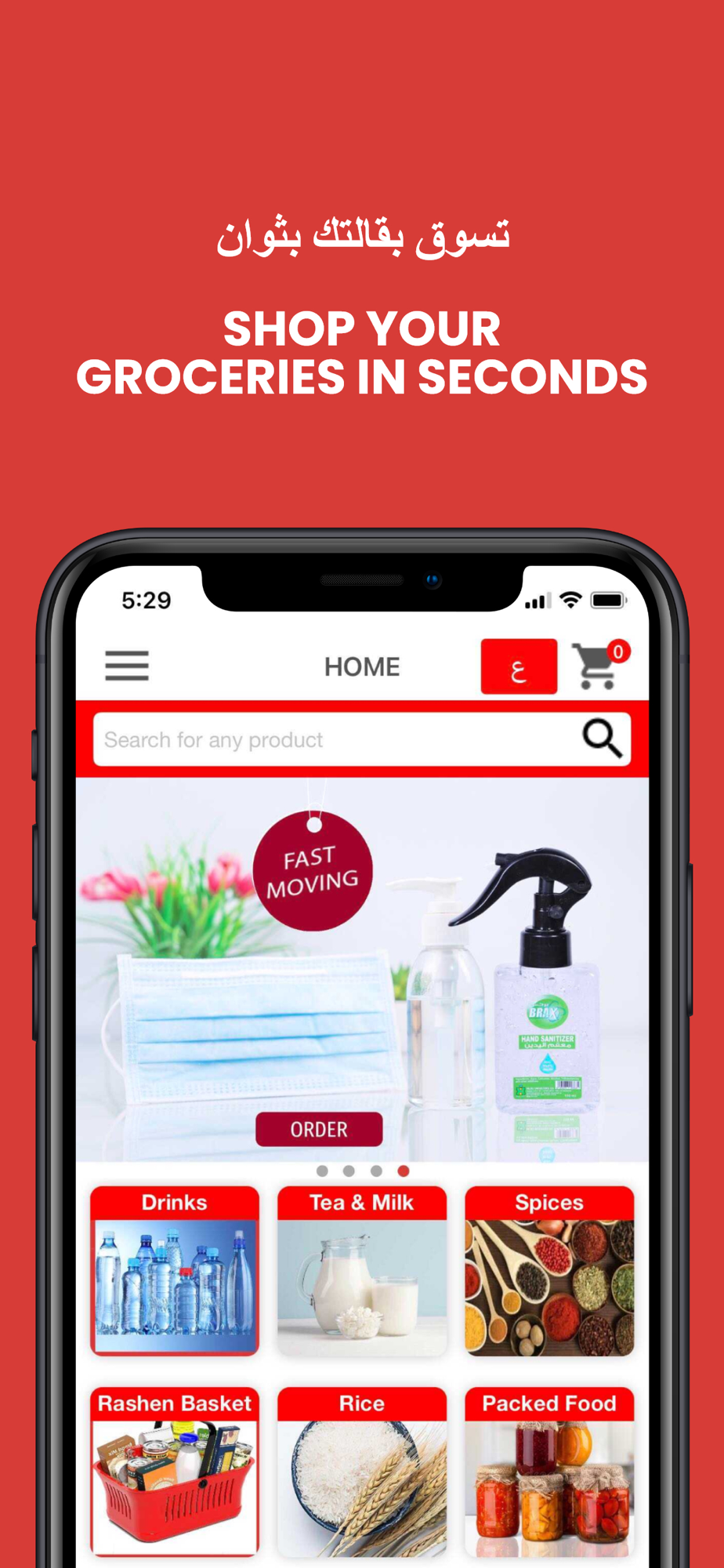 Our aim is to ensure that we keep our customers at ease and provide them with multiple choices for their needs on a click of a button. Orders can be placed using the RASHEN.com mobile applications and website. We will ensure to provide the best service quality to deliver the orders in timely manner.