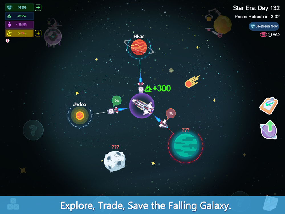 >> explore and trade specialties among dozens of different planets; At the same time, develop planets, collect materials and make products.