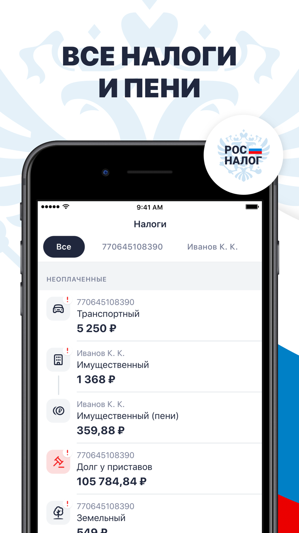 Приложение «РосНалог» - это удобный поиск, проверка и оплата налогов и других начислений:
