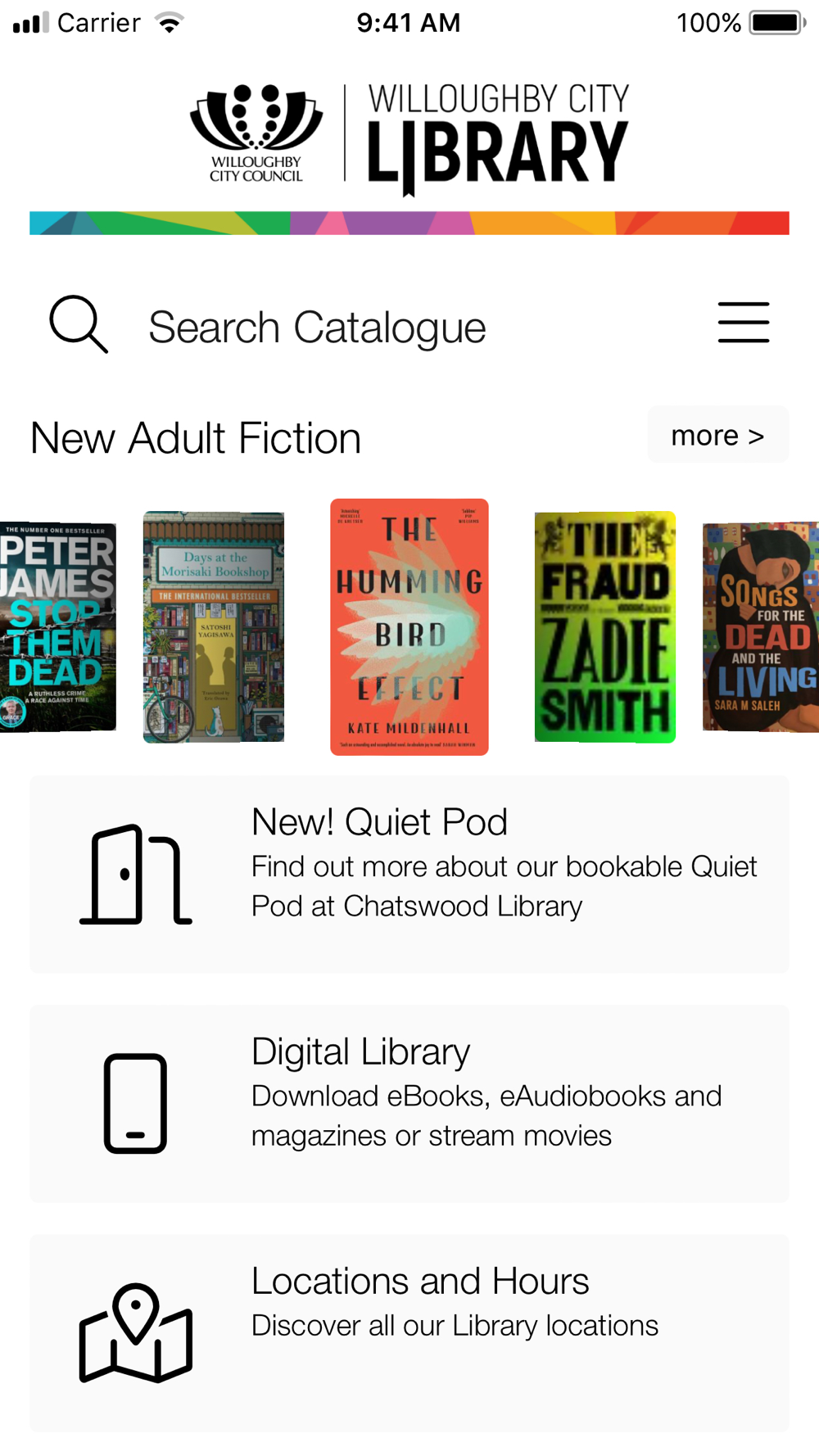 Access Willoughby City Library from your iPhone, iPad or iPod Touch. Manage your account, search the catalogue, renew and reserve books. Check out our eAudiobooks, eMagazines and eBooks with free access to RBDigital and Borrowbox. Follow us on Facebook @ChatswoodLibrary for our latest events and Library news.