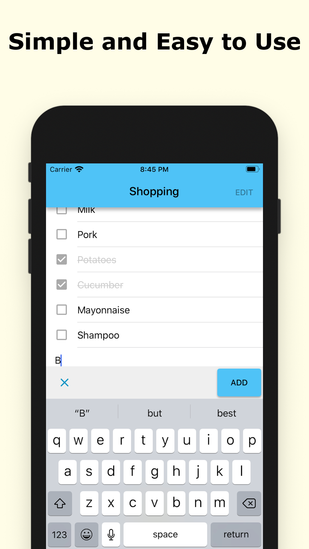 It is a very simple and easy to use to-do app.