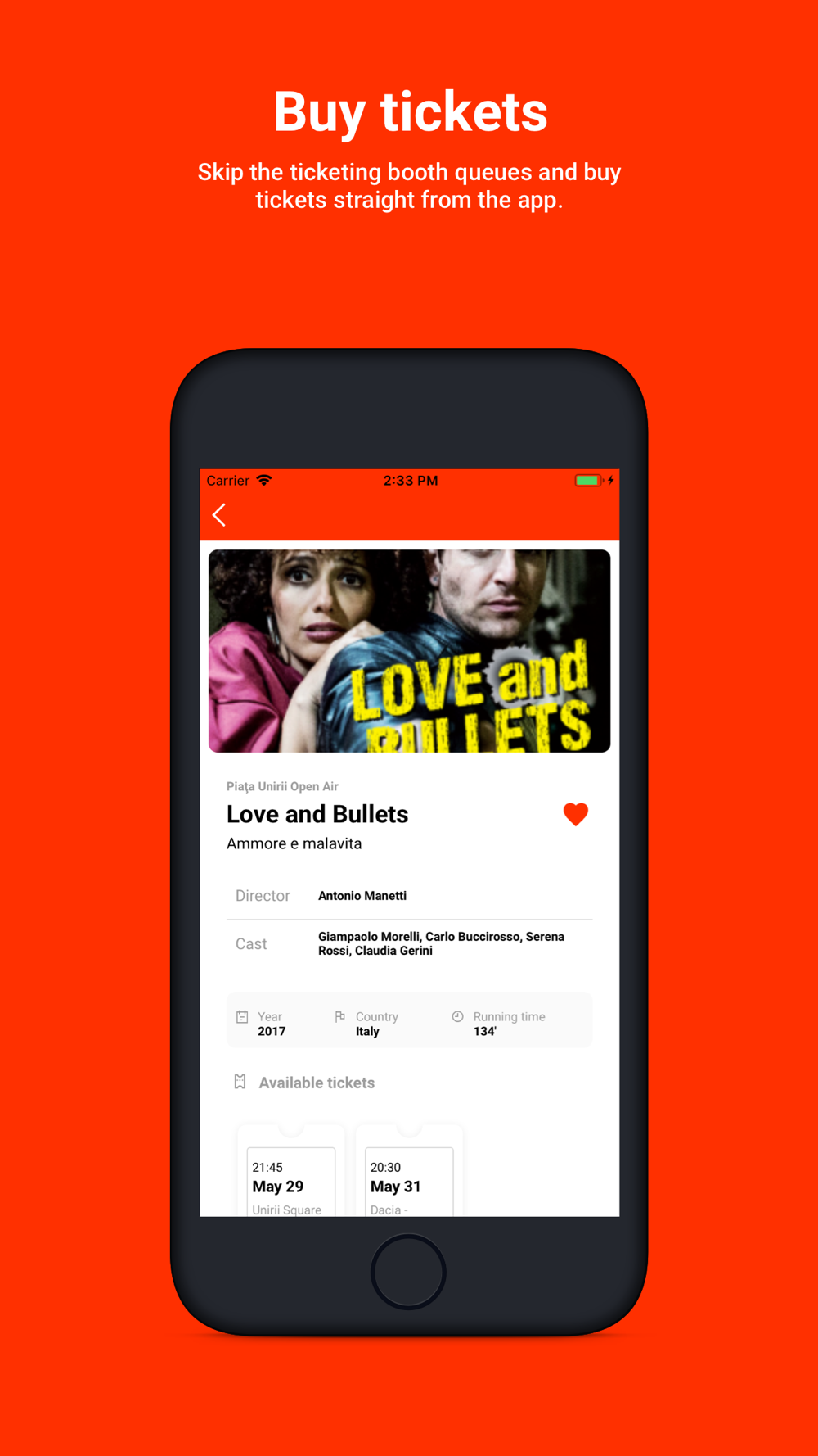 • Express your opinion of the films you’ve watched by rating them and help your favourite one win the Audience Award. Even if you didn’t buy the ticket through the app, you can still rate them by entering the code from your paper ticket.