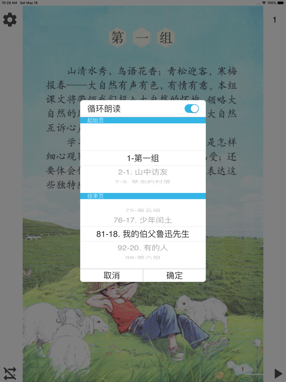 人教版小学语文课本,有声朗读,6年级上册,6年级上学期使用,支持单章朗读、单章循环、全书朗读、全书循环。