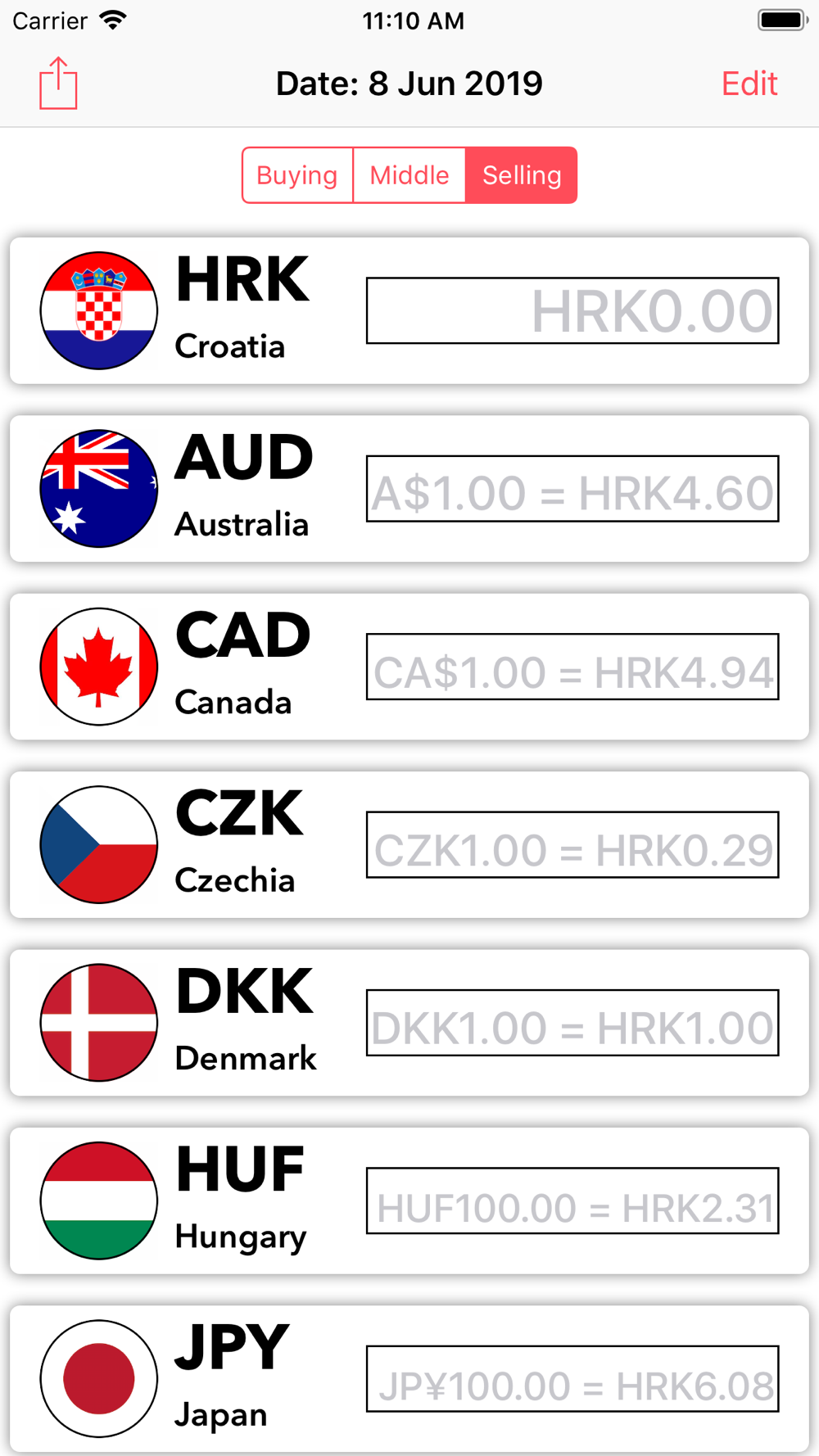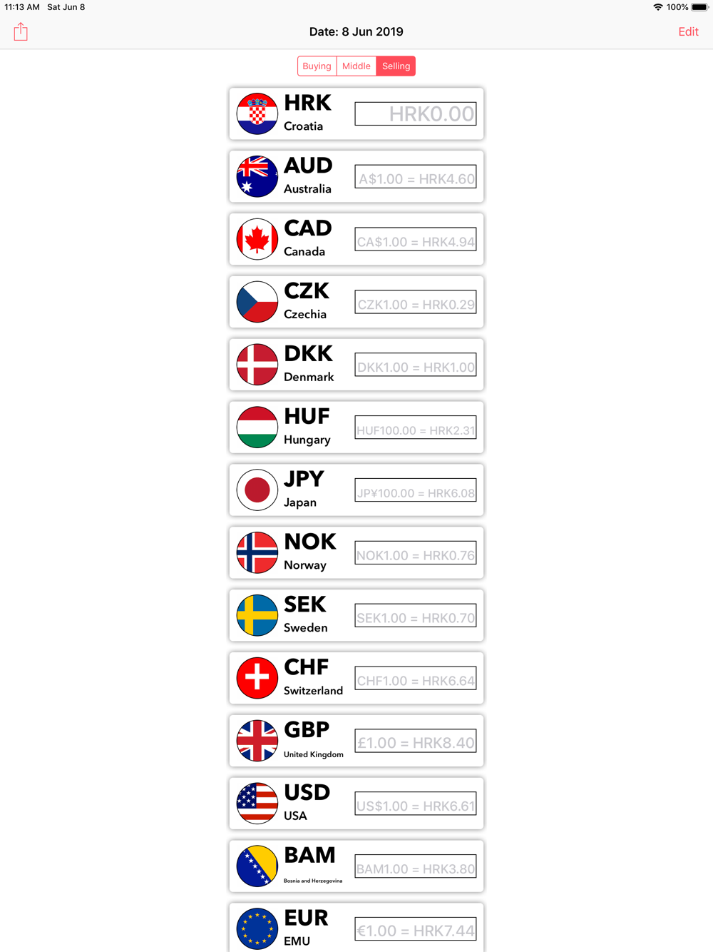 Currency conversion app with the official exchange rate of the Croatian National Bank.
