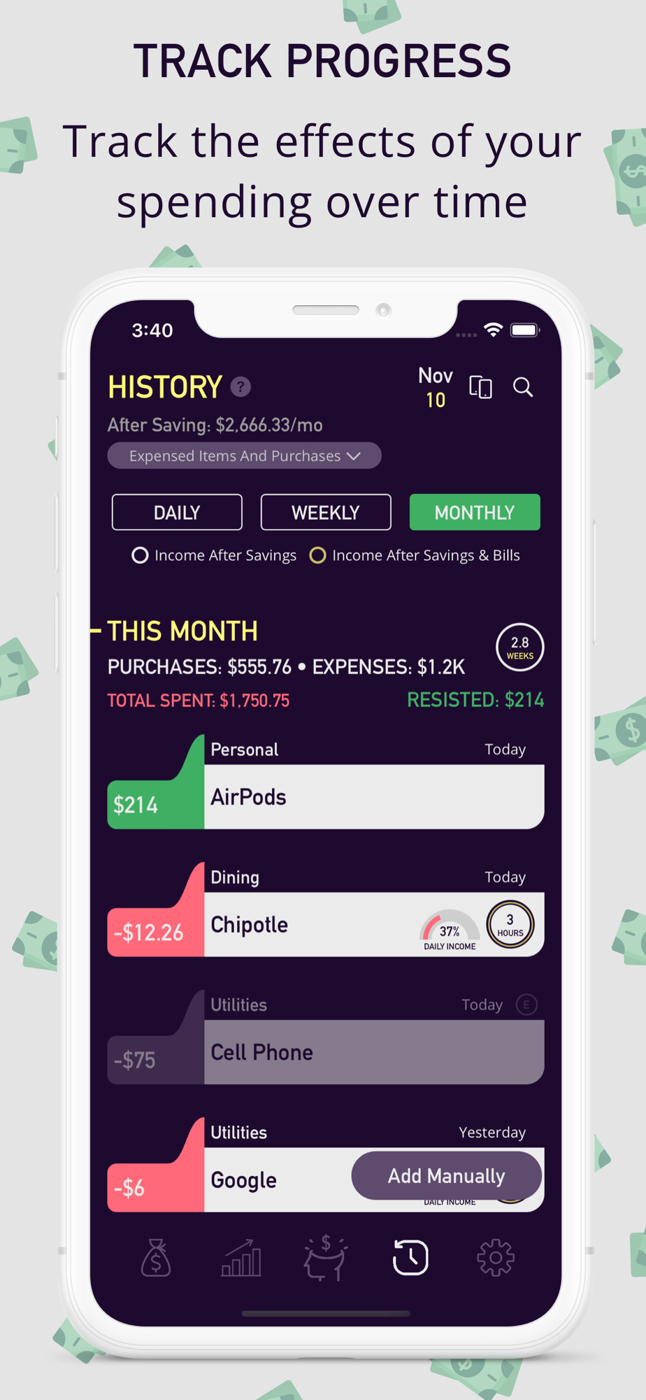 - Hands-On Learning: Track spending and savings actively, without linking bank accounts.