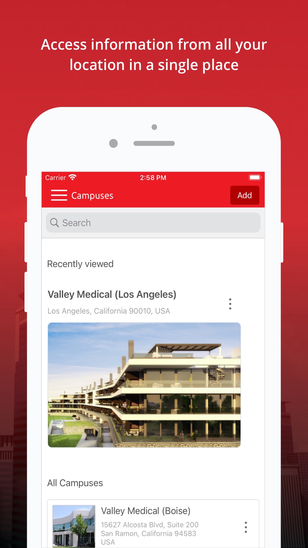 Quickly locate As-Builts or shutoffs with just a few taps. Visualize the relationship of As-Builts over time with our proprietary As-Builts Map View screen. A layered floorplan view makes it easy to determine which renovations or projects affected each room or space in the building. Simply tap a color-coordinated area to bring up the corresponding As-Built in seconds. Easily locate shutoffs for any building or floor with clickable maps.