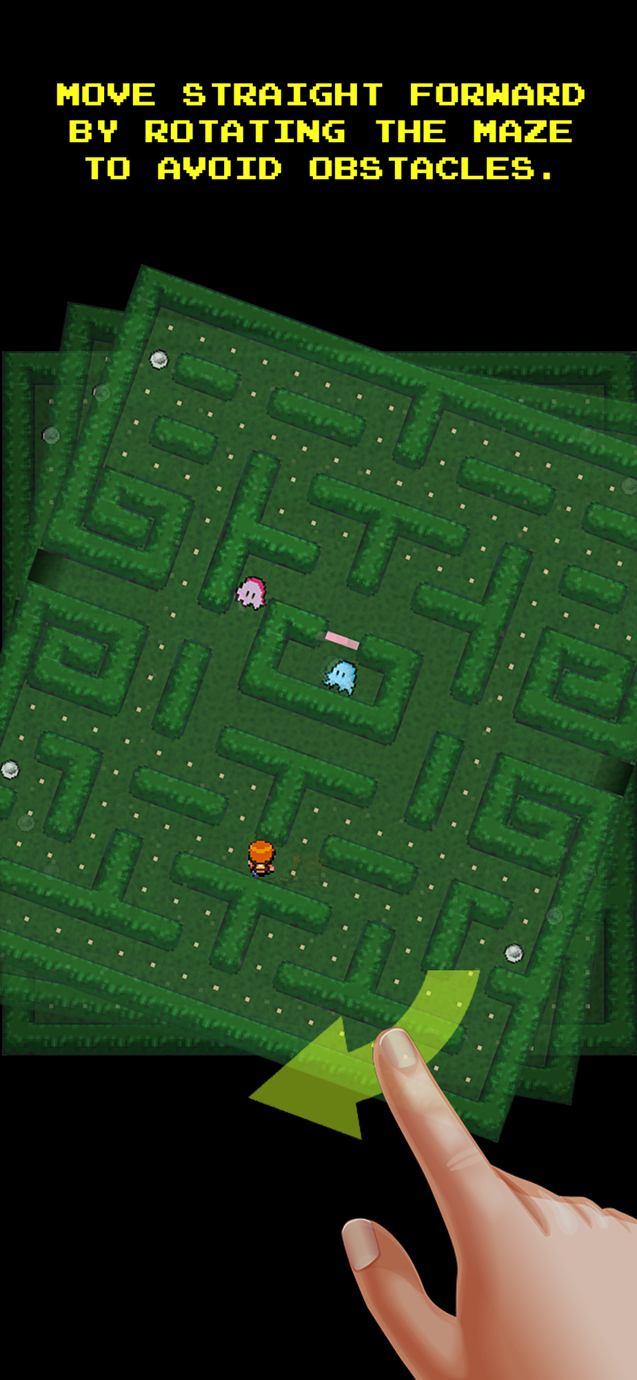 Your greed for collecting everything that comes down has led you to a maze. You walk through corridors and collect items scattered along the way. At some point you start to hear footsteps and realize that you are not alone.