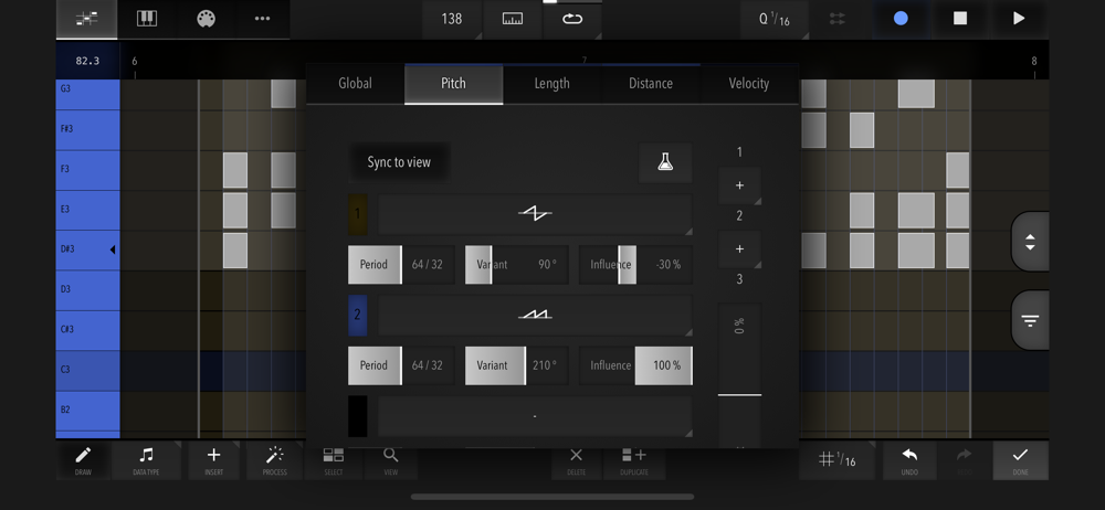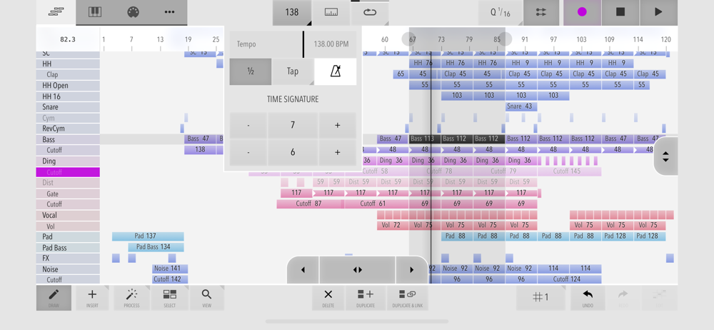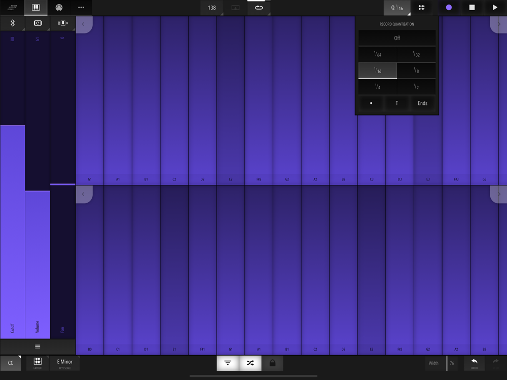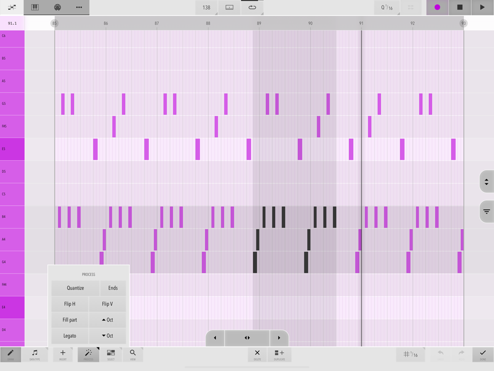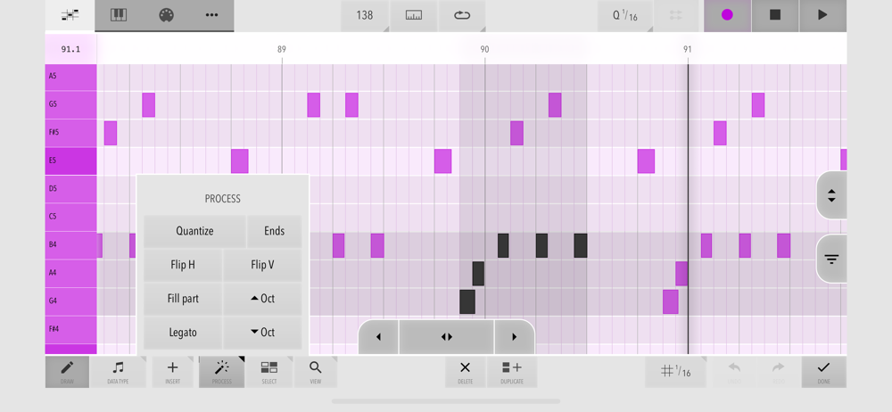 - Smart Draw mode: Touch to create, touch again to delete, drag up/down to transpose, drag left/right to change length