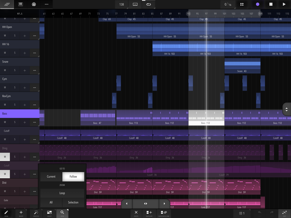 - Selection tools: Box, Same Beat Position, Invert