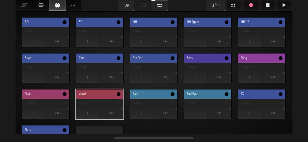 - Controllers can be moved by sliding (ribbon), device rotation (up to three axes at once), like a button (sustain pedal, "trance gates"), or by touching the keys at different vertical positions. All highly configurable.