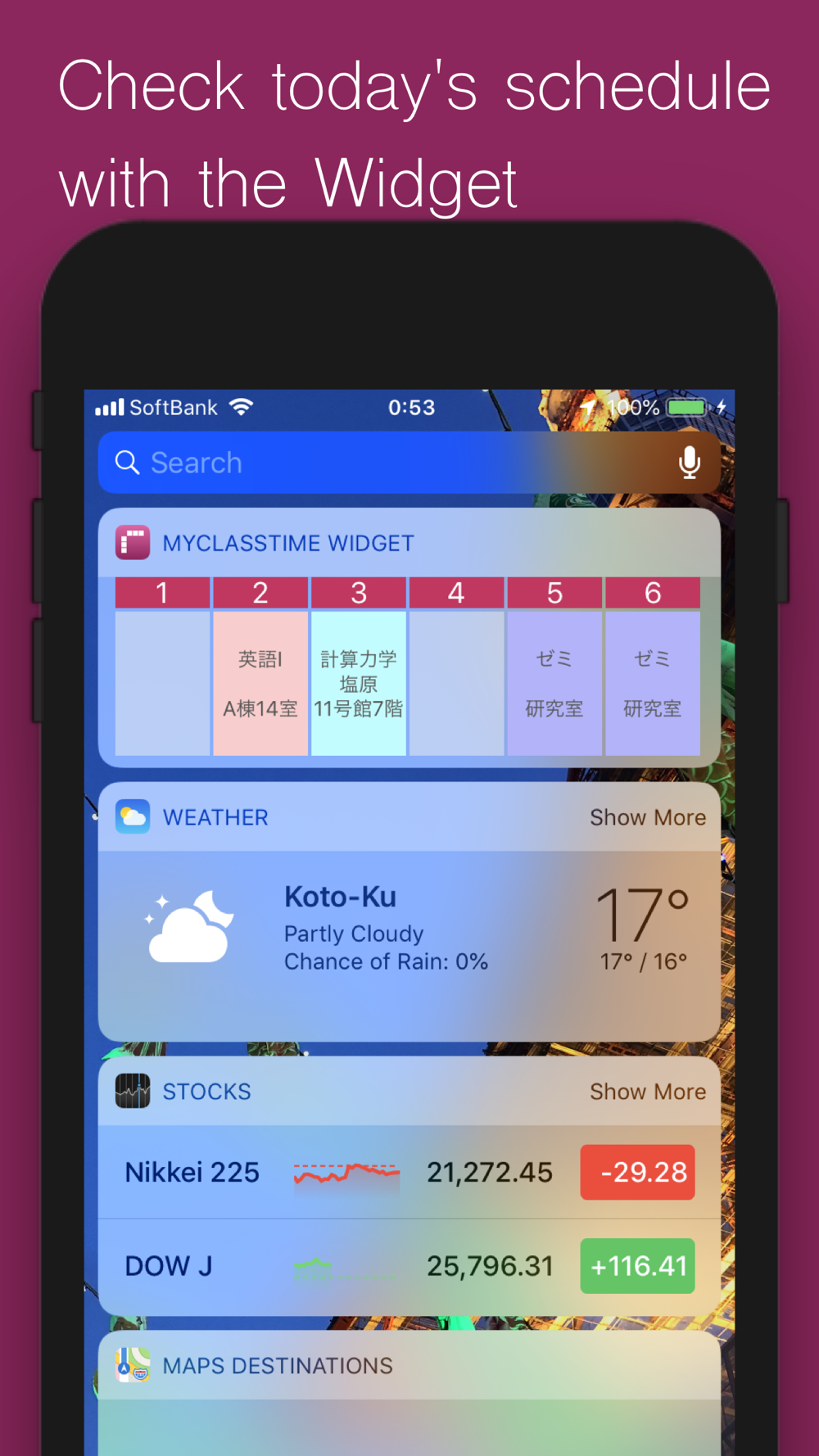 You can easily check today's timetable by using "Today Extension".