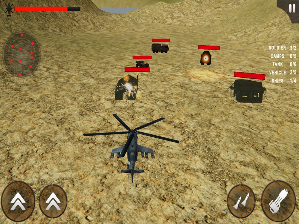Follow the map carefully and occupy the position that suits you best for targeting the enemies with your army commando. Aim at the base camps of enemies and start shooting at the spot when you find any suspicious activity. Use different camera angles for aiming rival flying machines. Show profession chopper shooting skills for becoming the superstar of free-flying games.