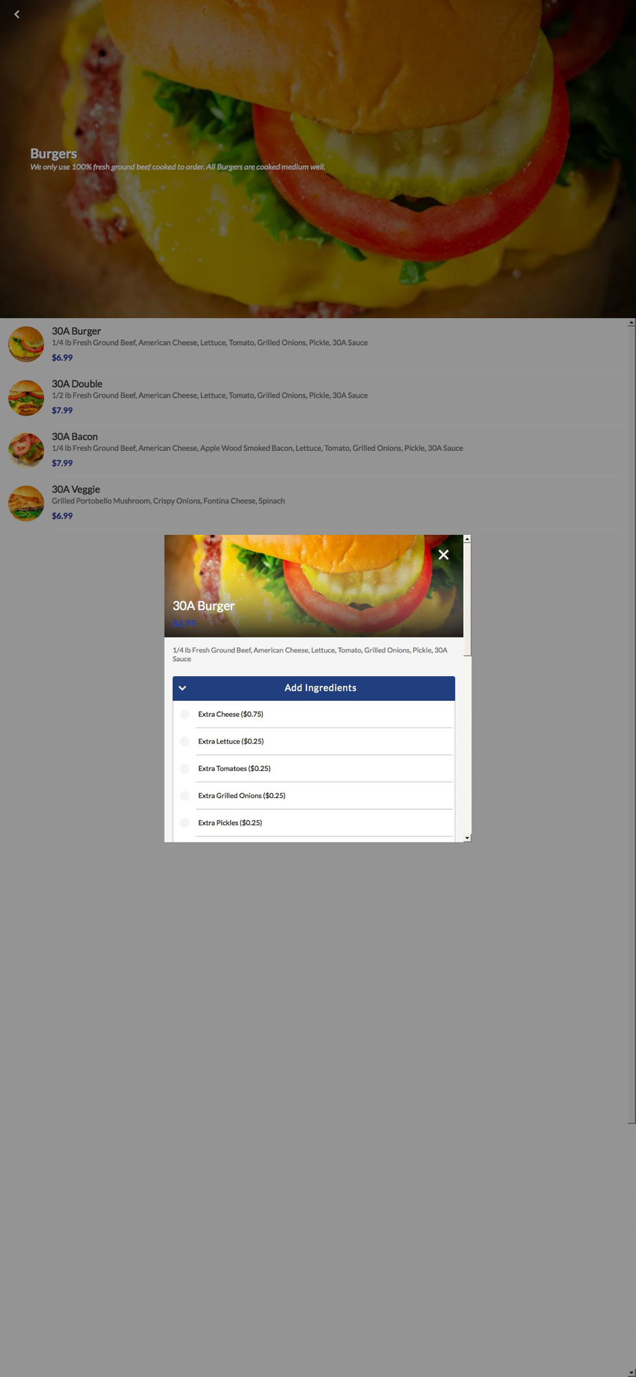 Now you can order online and skip the line! Pick-up and delivery options, rewards and more. Install the 30A Burger App for online ordering, exclusive offers & coupons and more, right on your mobile device.