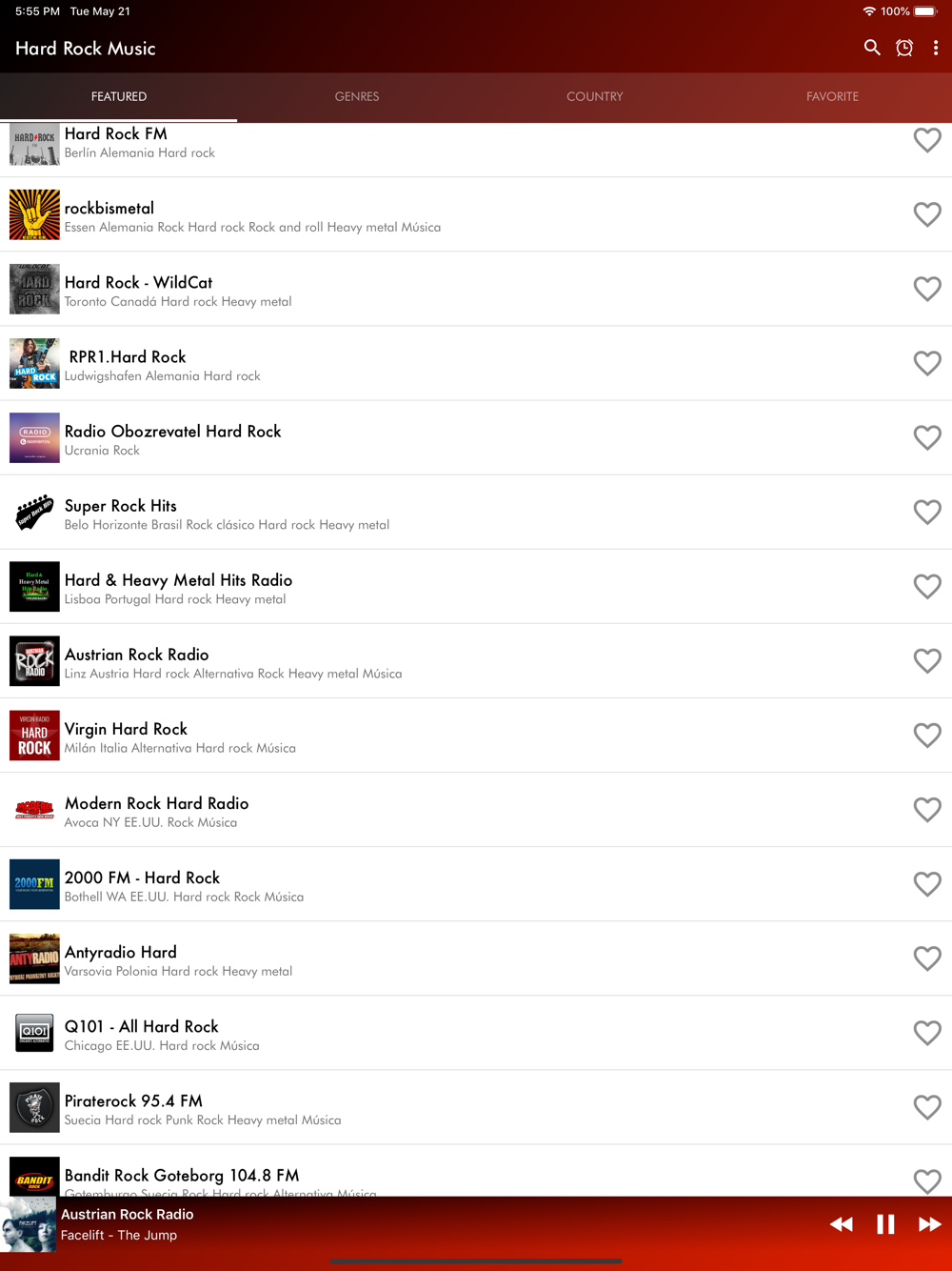 Hard rock radio stations gives you the best experience when listening to your rock music. Easy-to-use interface, with just one button you can add to your favorites list.