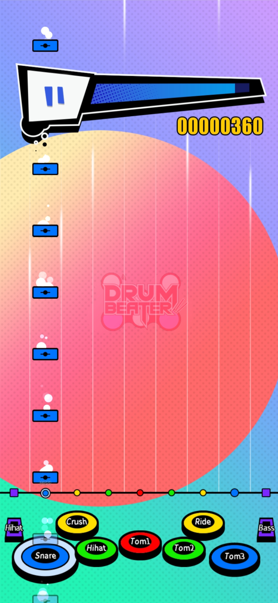 전자드럼 패드를 이용하여 실제 드럼 연주를 시뮬레이션이 가능한 리듬게임으로 개발하였습니다. 여러 장르의 트렌디한 음악을 담았고 초보자도 쉽게 접근 가능하시도록 난인도별로 나눠두었습니다.