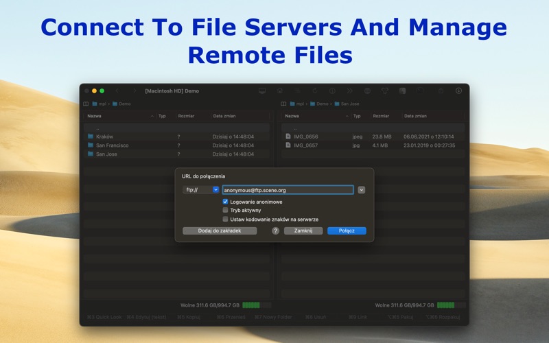 MaxCommander can connect to file servers and you can manage remote files and folders on such servers. The following servers are supported: