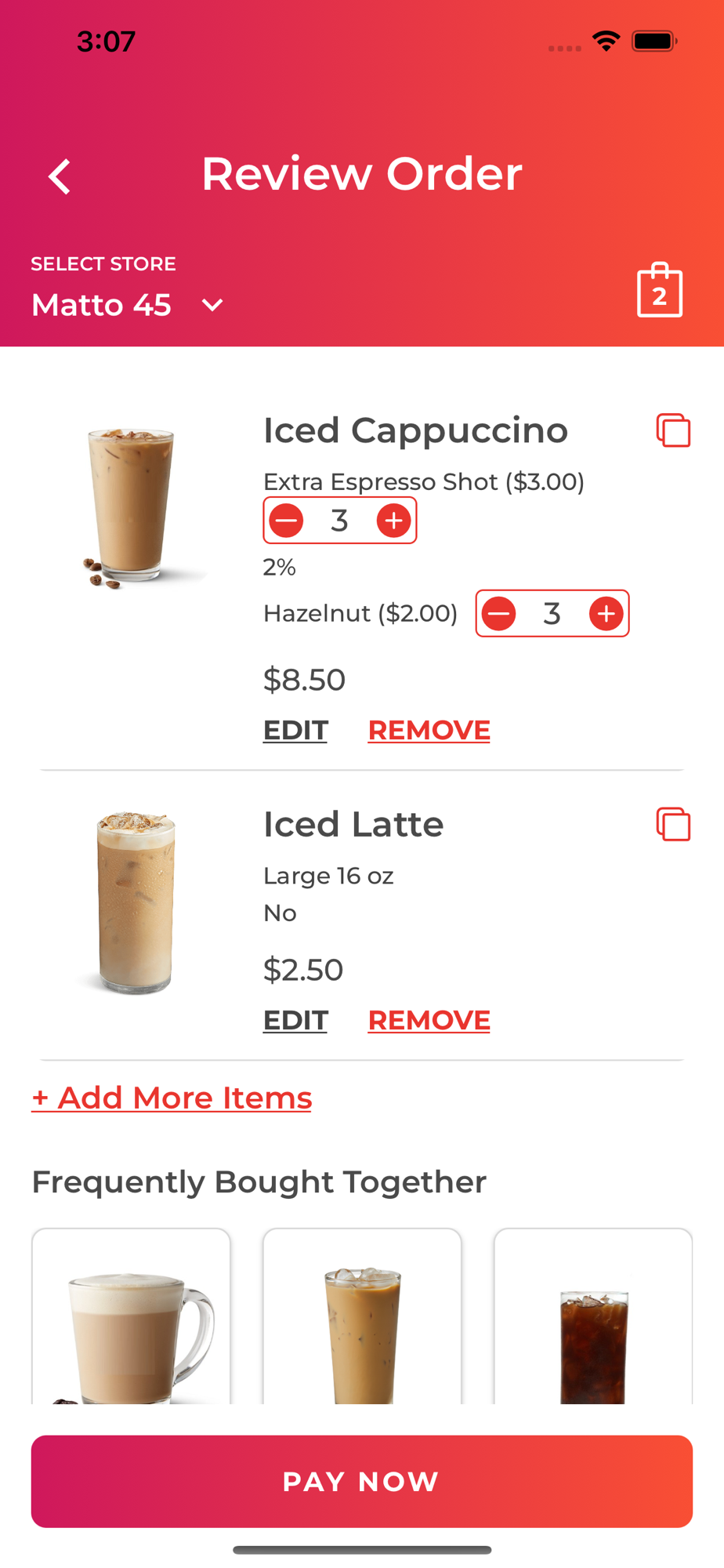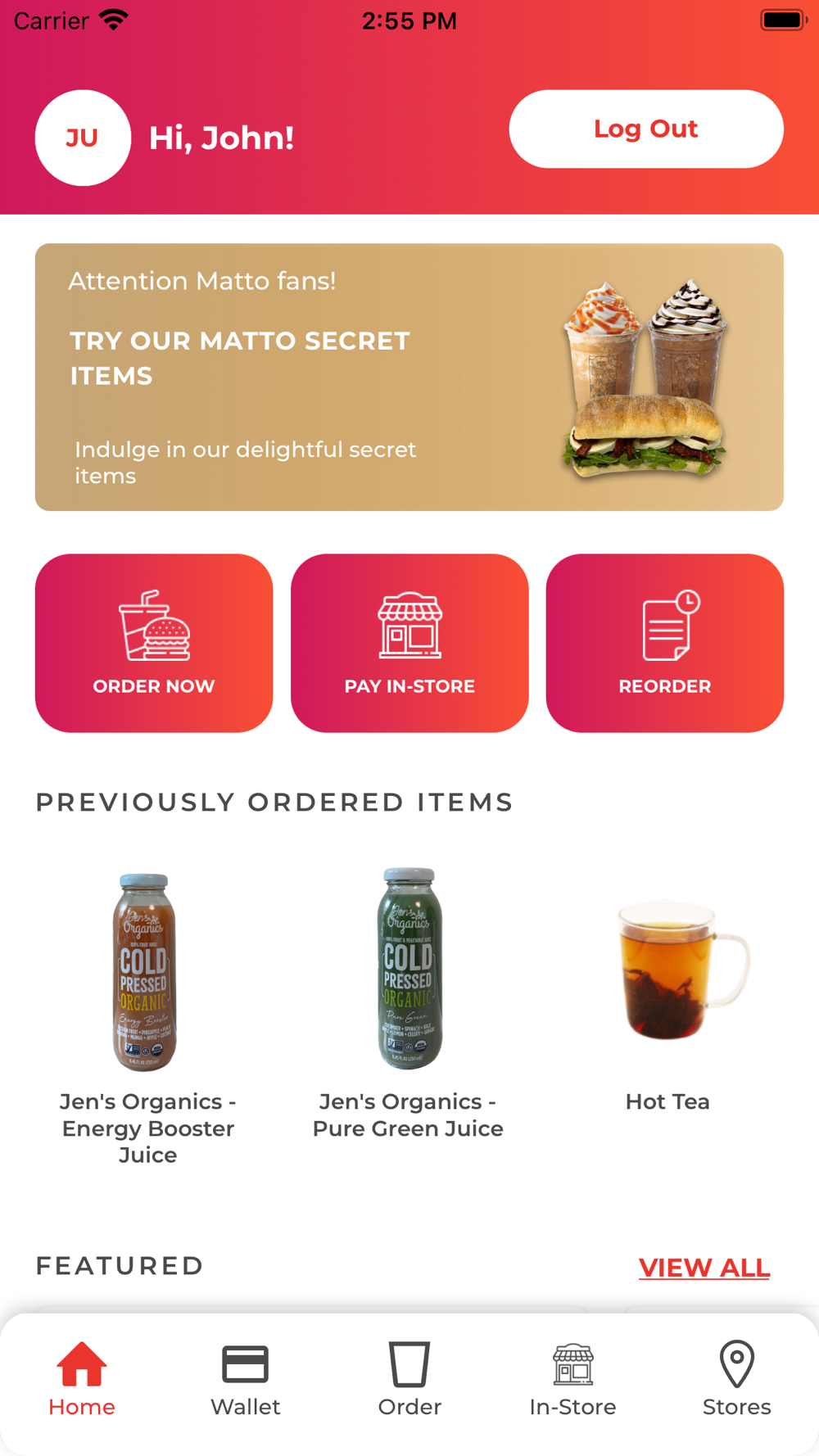Matto's app is designed to provide users with a fast and convenient way of ordering their favorite items. Orders are received by the store and prepared so that they're ready for pickup when the customer arrives. There are monetary rewards for users who purchase a certain amount of items.