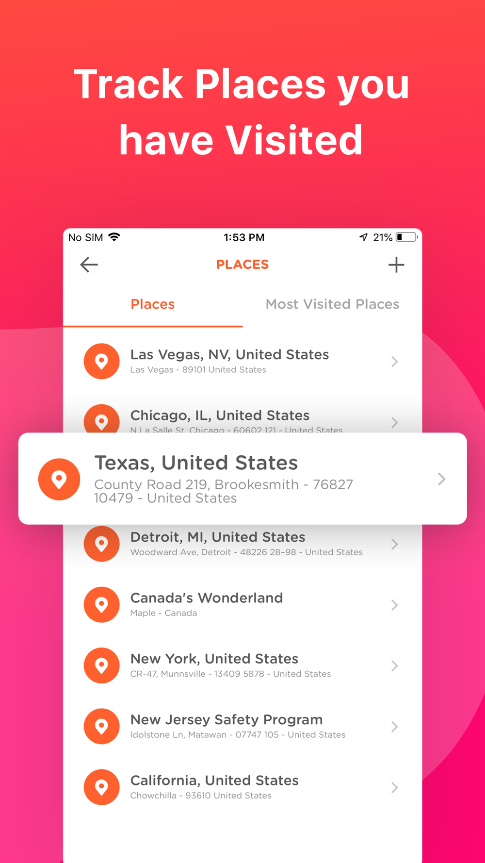 • Check your children, couple, or friends’ location history to know what they did that day.