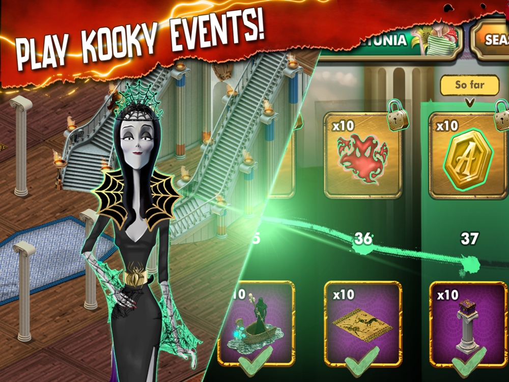 Collect characters like Morticia, Gomez, Wednesday, Pugsley, Uncle Fester, Grandma and many more while you design a house so spooky it will crash your creepiest dreams! Make room in the Addams home to fit the whole family (not that Thing and It will need it, LOL!) and play puzzle games in our events to dig deeper into the mansion’s story.
