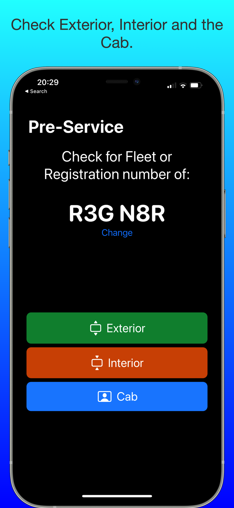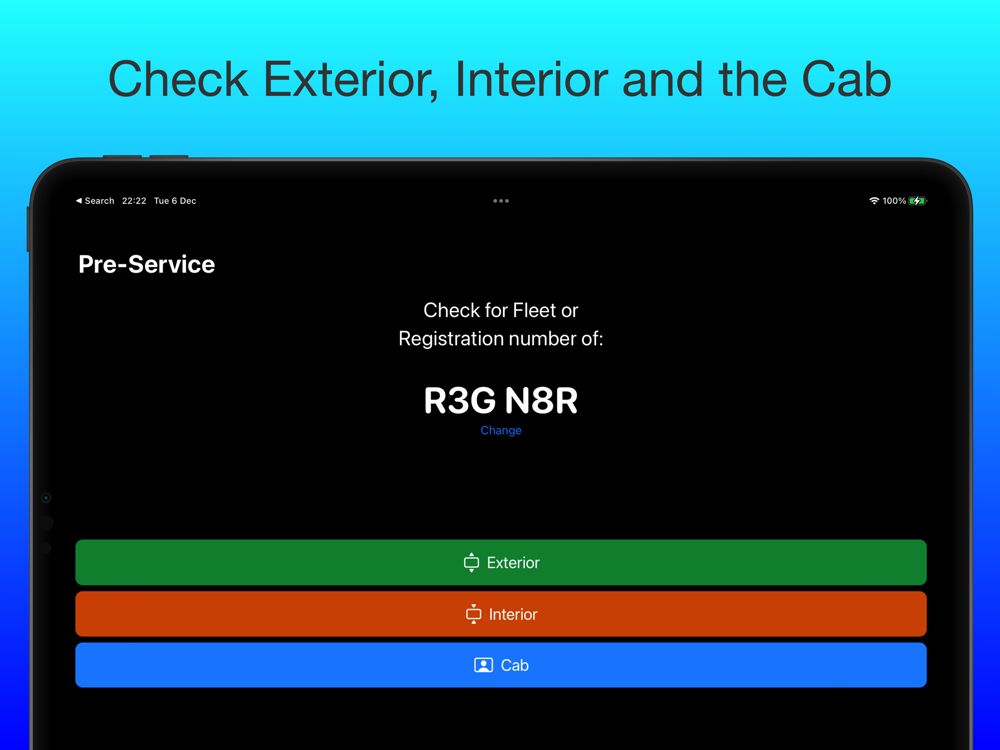 For the Vehicle Check Test a compressive pre-service vehicle check list is given that you can practice and record; Log any defects; keep track of the status of them; add additional notes and photos on the records.