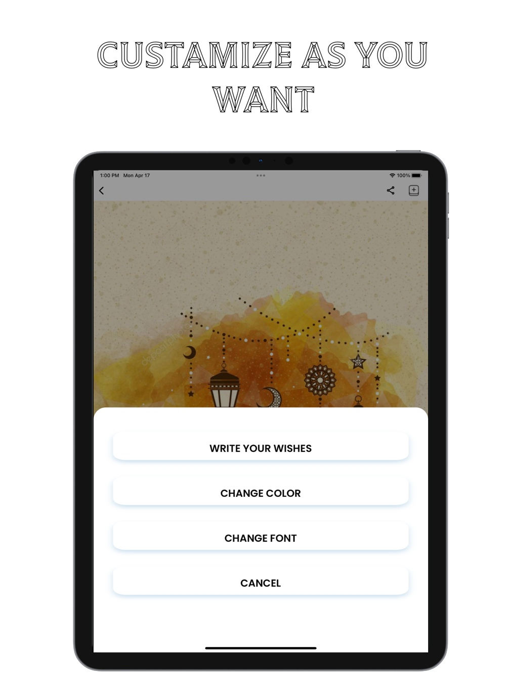 Send your well wishes with beautifully designed Eid Mubarak themed greeting cards to your friends and family in a unique and beautiful way. There are many modern Islamic designed greeting cards for you to choose from and you can customise your personalised messages however you like it. So start using this cool app to send Eid Ul-Adha Celebrations greetings