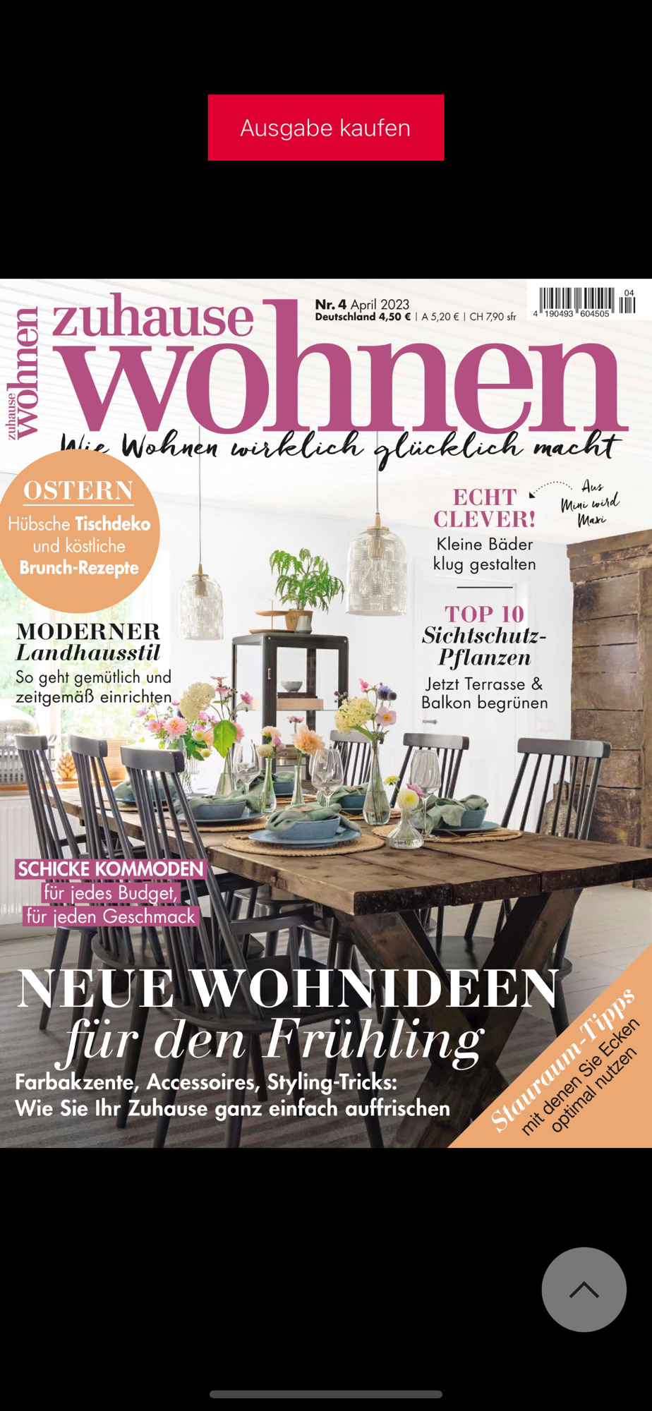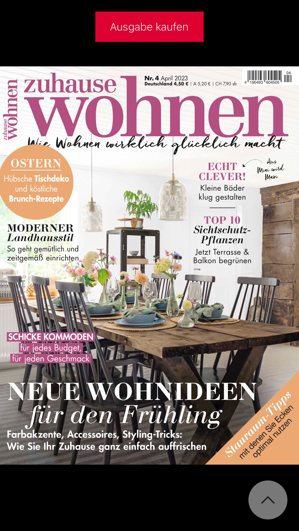 - eine komplette Ausgabe ZUHAUSE WOHNEN kostenlos