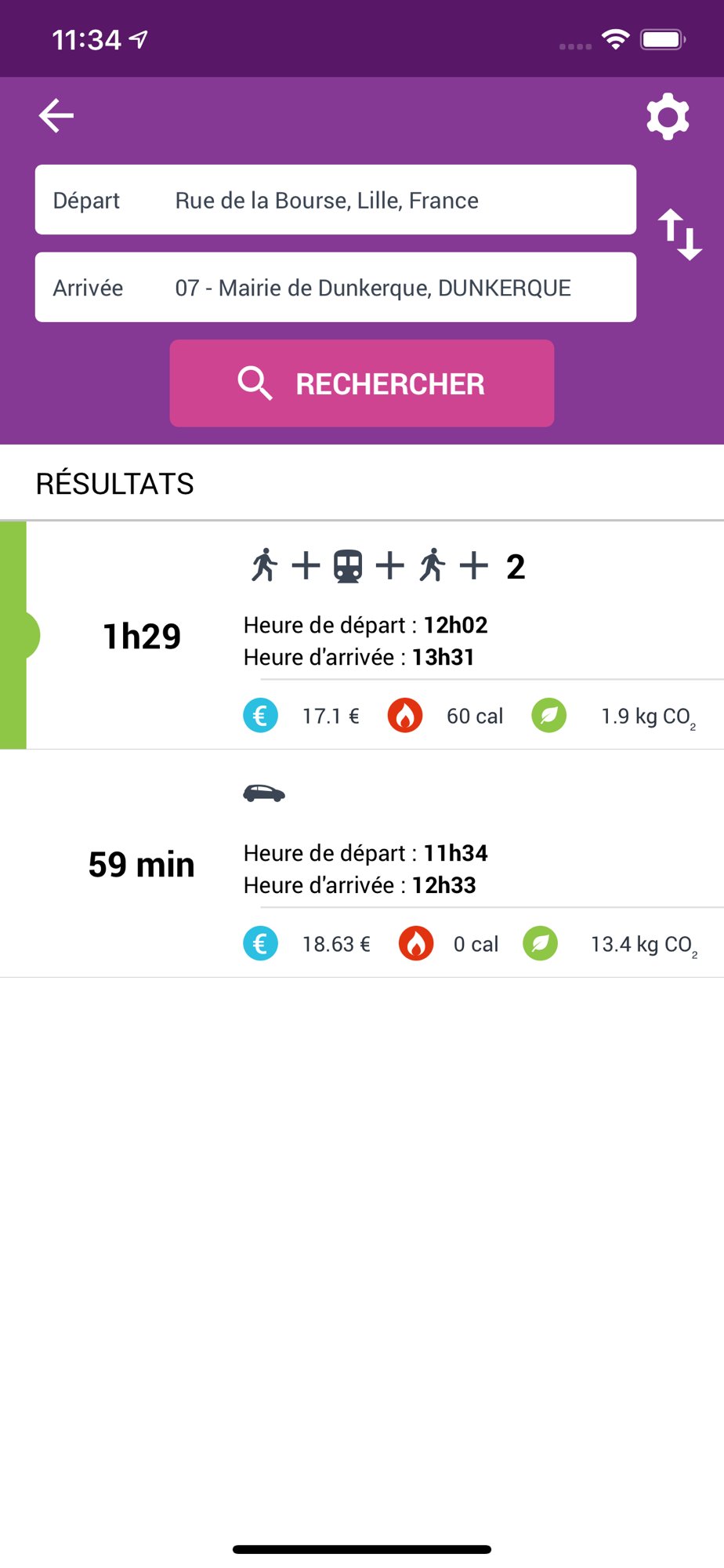 • La géolocalisation « autour de moi » toute l'offre de transport disponible, y compris les parkings, les stations métro/gares, les stations vélo libre-service et leur disponibilité en vélo.