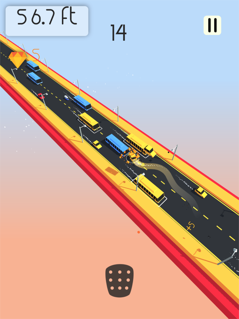 Use your left and right fingers to steer a simple car through the midst of a busy highway. Collect the golden power-up to become an invincible maniac capable of smashing through all cars and buses! Grab as many diamonds as possible to purchase new cars (coming soon). Enjoy