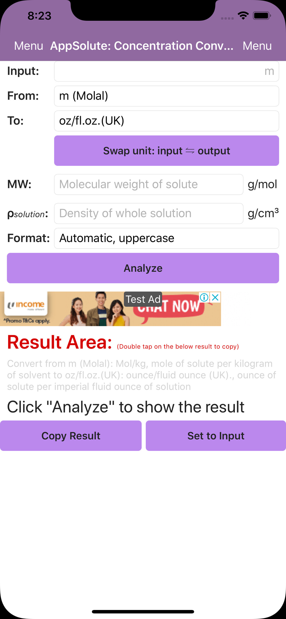 AppSolute (Lite) is the concentration unit converter. It can convert 5 units,