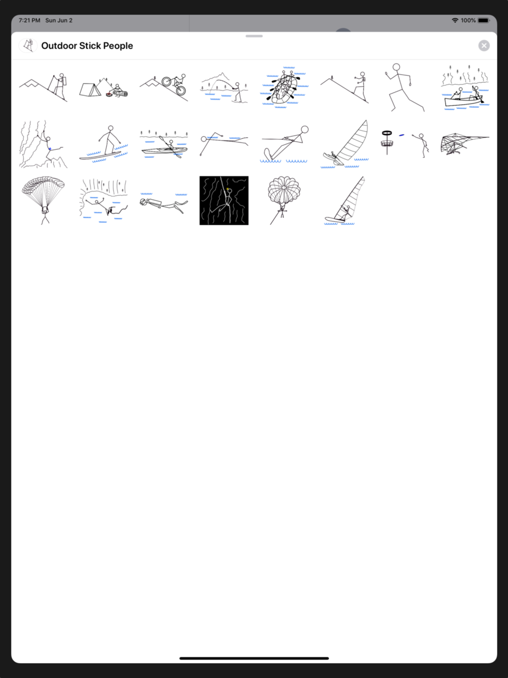 22 fun outdoor adventure iOS iMessage stickers featuring stick figures enjoying awesome activities!