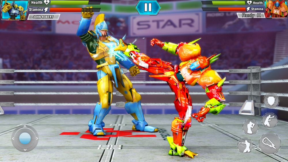 This new Robot wrestling Steel fighting game challenges your skills and gives you a chance to be the world wrestling champion of robot fighting. This game isn’t much change from human wrestling ring fighting but adding some fanatic robots to fight for you in the ring, the ultimate adventure of the steel fight!Say this boxing game, or a wrestling game, or robot combat, all is right! Because this is the combination off all these!Control your robot heroes in the ring and demolish your opponent if you desire to win. This fanatical robot wrestling will give you the real fighting experience while face to face to deadly steel men. Simulate your robot and don’t let the opponent take over you!Upgrade and customize your hero on coins to get the extreme powers and combos to get the enemy immortals down, else that will be impossible! Kick, punch, defend and move all over the ring, counter attack and punch combos, the super power skills, All here as a pro wrestling game but here is the addition of adventure as robots is in the rings!Features: 1. Ring Fighting 2. Robot Wrestling 3. Detailed Animations 4. Super Skills 5. Modern Robot models 6. HD Graphics 7. Wrestling arena 8. Realistic physics and moments
