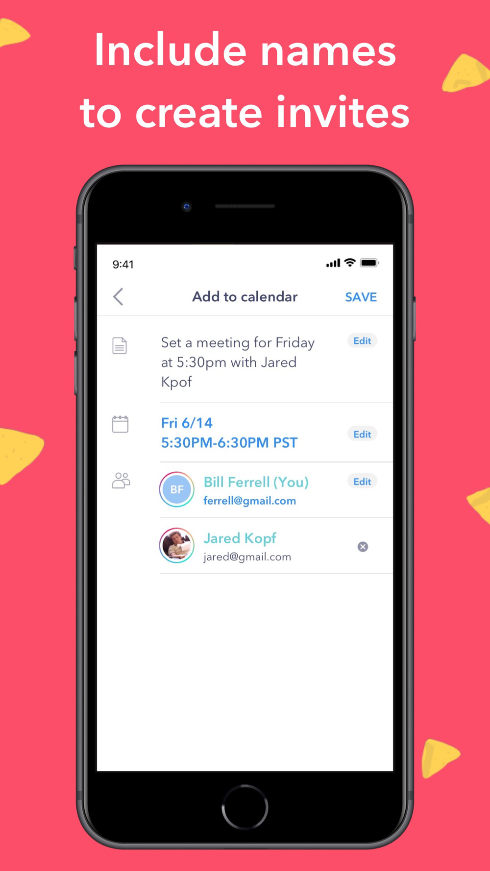 — Dates and times (FRIDAY at 2PM) are automatically understood.