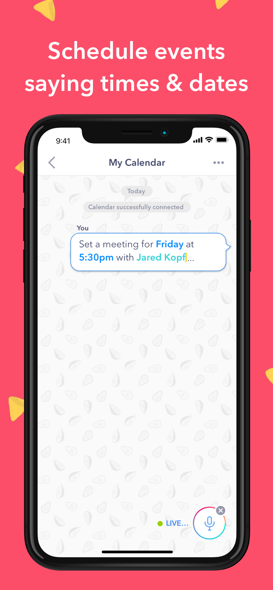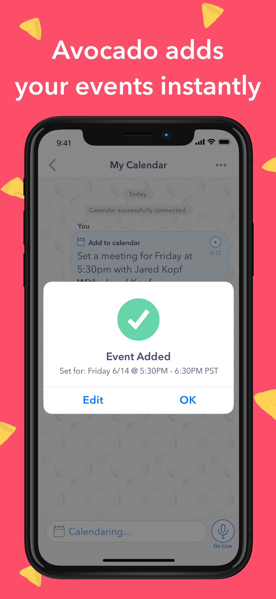 Speak events onto your calendar: Avocado is the fastest, easiest way to turn thoughts into actions. Get it out of your head and into motion.