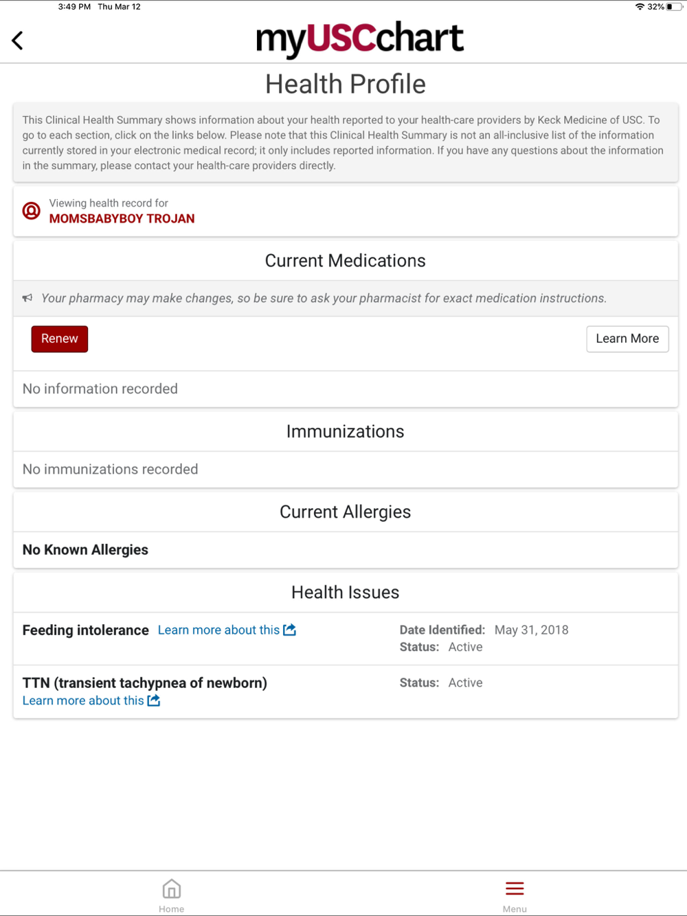 Please note that this myUSCchart should not be used for urgent medical matters.
