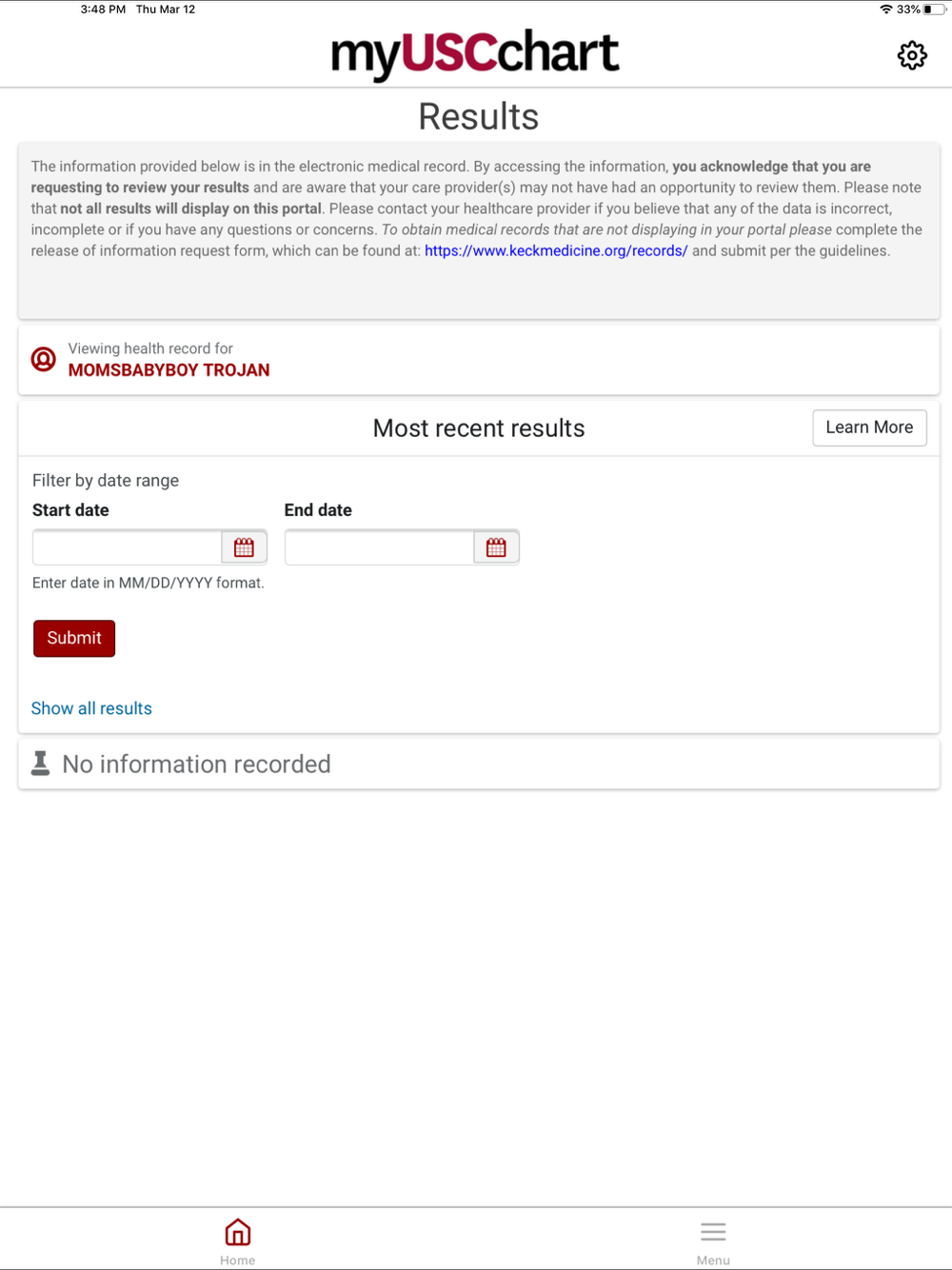 Keck Medicine of USC is committed to patient health, safety and access. Through this app we offer 24/7 access to your medical records. Use this app to send secure messages to your physician, access test results and request prescription renewals and appointments from your smartphone.
