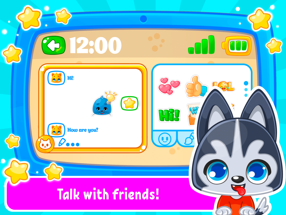 This children game will become the best game for your toddlers. "Kids Tablet" is an Interactive game, where little boys and girls will be able to correspond with animals, drawing pictures, counting numbers, and just have cool spending time. And also it has a bright design and color splash that will attract your preschoolers.