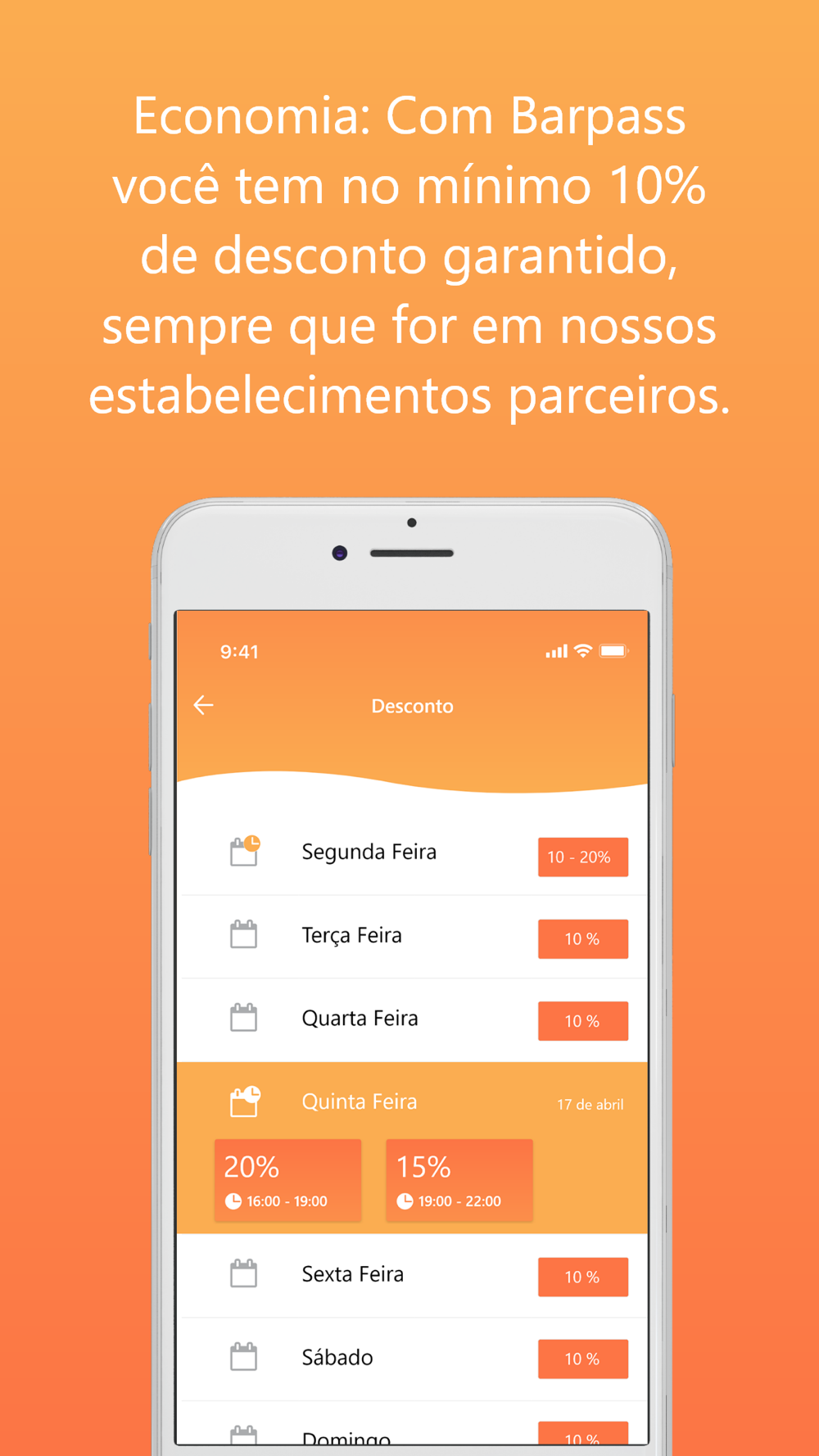 No Barpass você tem no mínimo 10% de desconto garantido, sempre que for em nossos estabelecimentos parceiros.