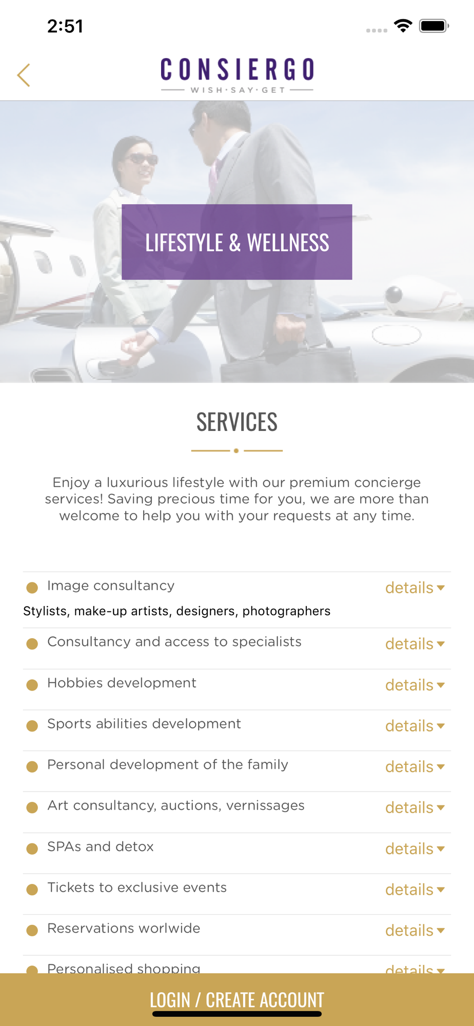 Aplicația vă permite acces la serviciul VIP pentru aeroport, trimite o solicitare scrisă sau suna un consultant pentru mai multe informații legate de serviciile de concierge de care puteți beneficia sau pentru a-i comunica solicitarea dumneavoastră în mod direct